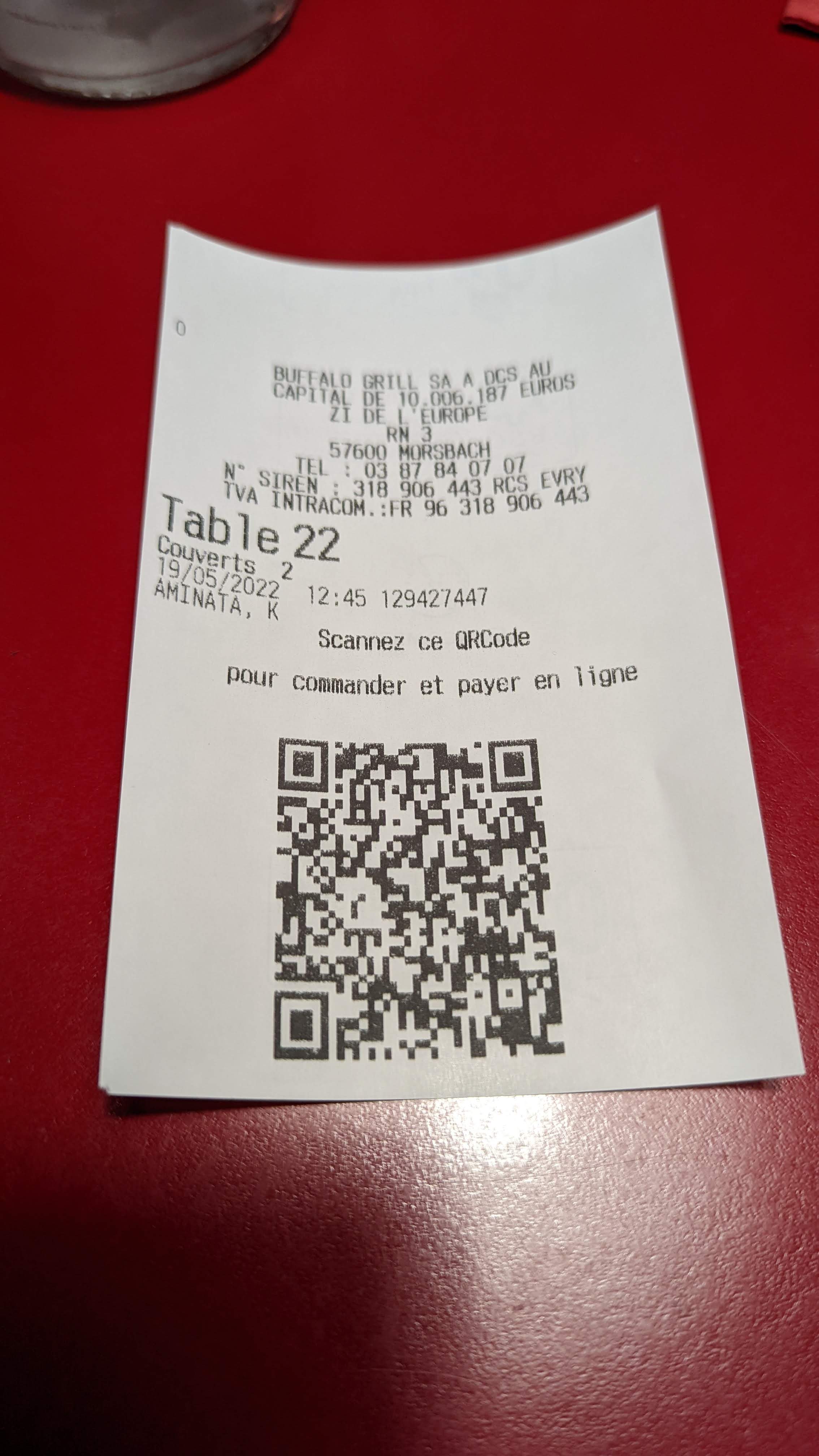 Update du 08 mai 2023 : Premier souci on ne nous à pas proposer de salade d'accueil ? Est-ce aussi sur la liste de suppression qu'a fait l'enseigne... Je ne sais pas mais au vu de la suite cela ne m'étonnerait pas... Le restaurant à gardé sont aspect familial même s'il veillait de plus en plus et si un sérieux coup de jeune comme dans d'autres restaurants de l'enseigne ne ferait pas de mal ! Autre point vraiment mesquin de l'enseigne c'est d'avoir supprimé les accompagnements à volonté dans les menus uniquement et d'avoir noté ça en tout petit (comme vous pourrez le voir sur les photos). Cela renvoie pour moi une mauvais image de la marque en ses temps difficile d'augmentation. Pour moi Buffalo ne sera plus l'enseigne préférée des familles d'ici quelques temps... Update du 22/01/2022 : Le restaurant a bien changer et retrouver sont ambiance familiale, c'est de nouveau un plaisirs d'y aller avec les enfants. Le nouveau système de commande par QRCode est bien mais il devrait y avoir quelques amélioration comme la possibilité de commander deux accompagnement ou bien de choisir quand les plats sont amené à table. Sinon je recommande de nouveau la venu fans cet établissement. Visite du 15/06/2019 : J’aime bien la chaîne de restaurant Buffalo grill, mais il ne faut pas être pressé... les serveur vous oublie et ceux durant plus de 30 minutes alors que vous n’avez pas encore commander les plats... Bref il est dommage que dans ce restaurant il y ait autant de laisser aller et que la marque ne réagisse pas !