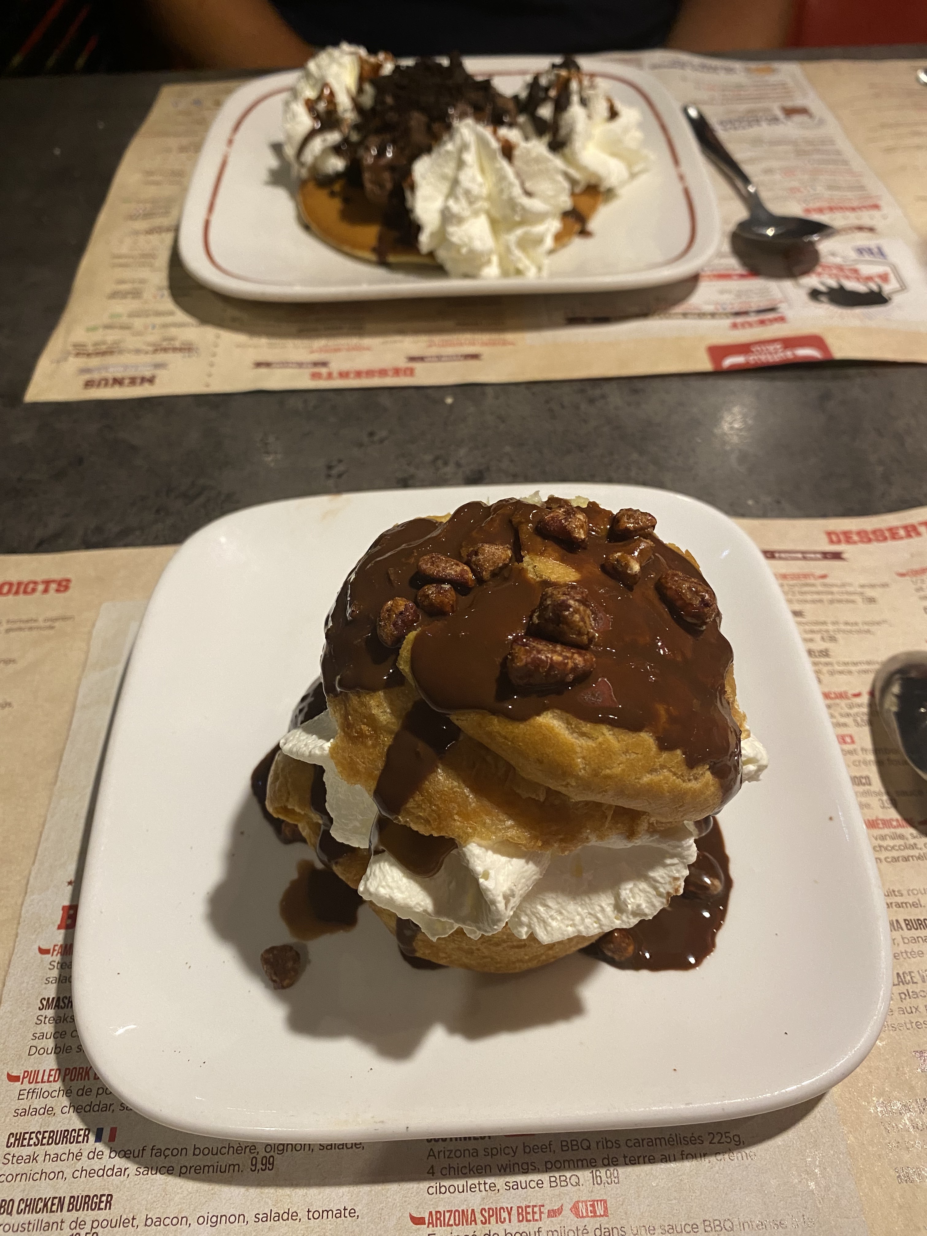 Service jovial et efficace. Merci. Édit : En quelques mois, cela s'est dégradé. Portion de frites ridicule, d'ailleurs, j'attends toujours la mayonnaise. La boule de glace et ridiculement petite, par contre noyée dans de la chantilly et du coulis. Gageons que l'arrivée du concurrent à côté vous incitera à redresser la barre. Le service est toujours très bien, mais cela ne fait pas tout. Dans un restaurant, ce qu'il y a dans l'assiette compte tout autant.