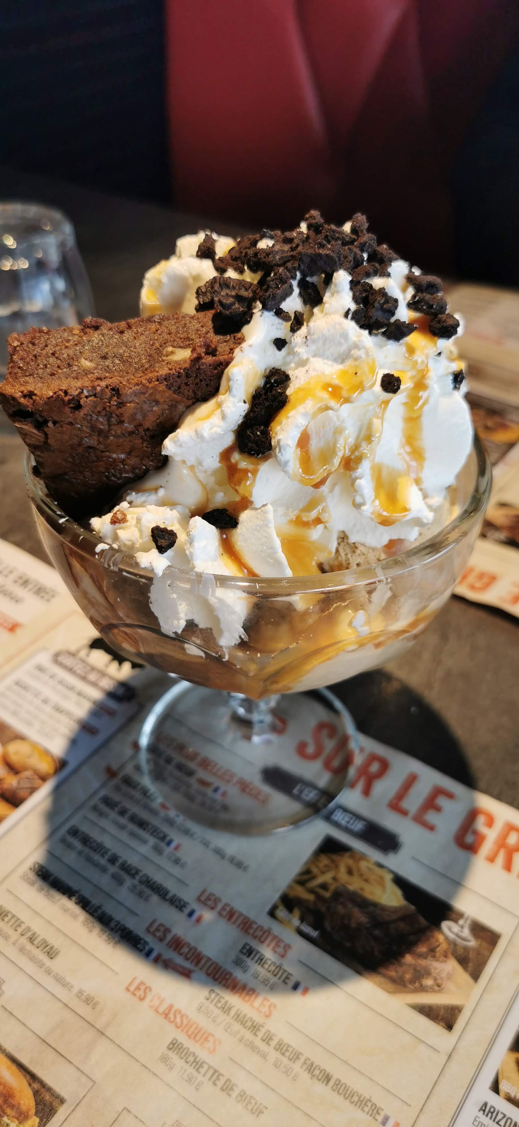A fuir les plats à partager ne sont jamais arrivés la biere servie pour une grim. est douteuse et les plats arrivent quasi froids et le service est médiocre... nous n y retournerons pas du coup nous n avons pas pris dessert nous avons c8nnu mieux dans cet établissement