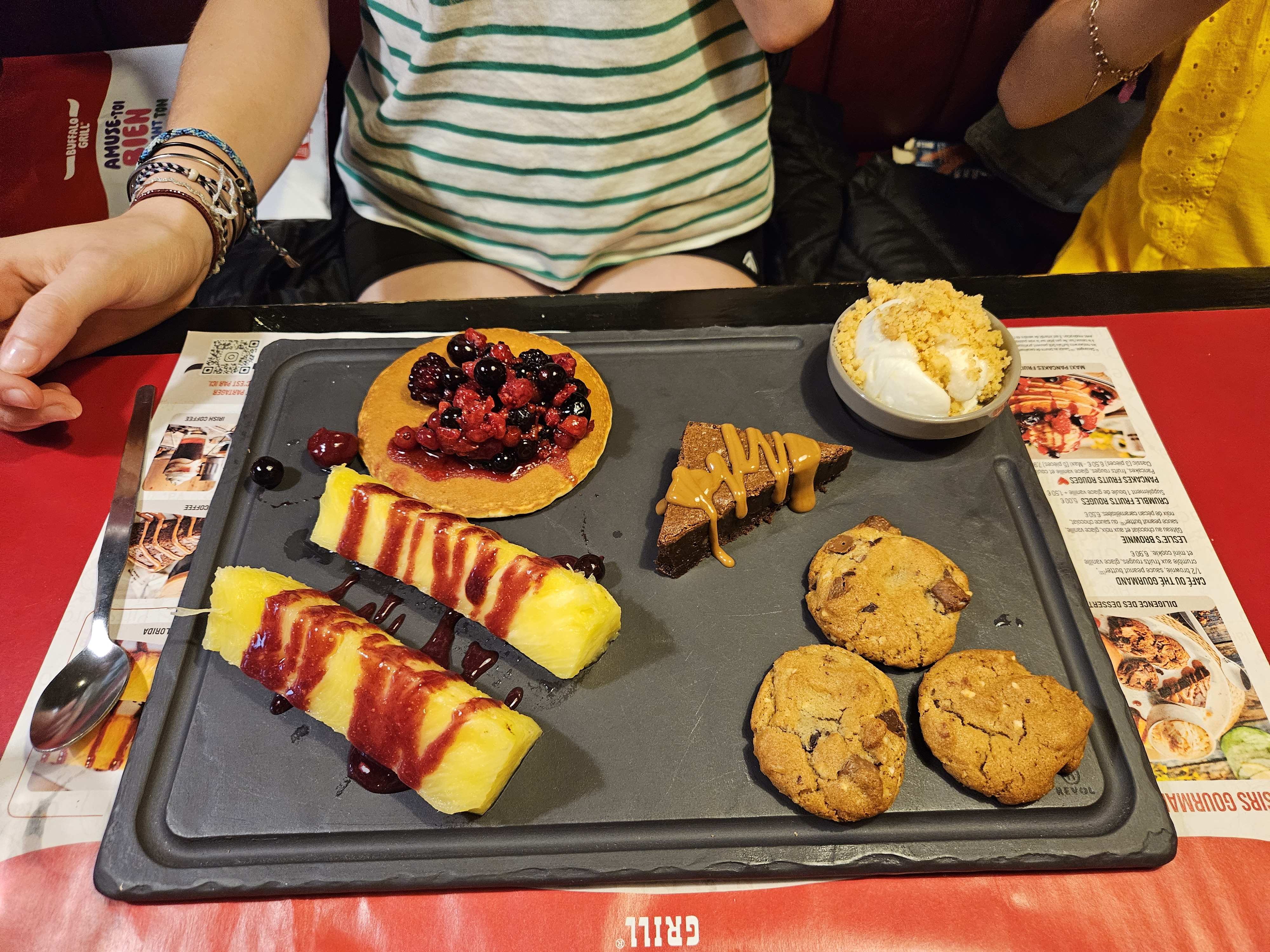 Merci à Zina et Arnaud pour le service, c'était super ! Moment très agréable et on a bien mangé, assiettes copieuse et desserts excellents, le plus dur c'est d'en choisir un seul !! (Je conseille la diligence des desserts pour les gourmands)