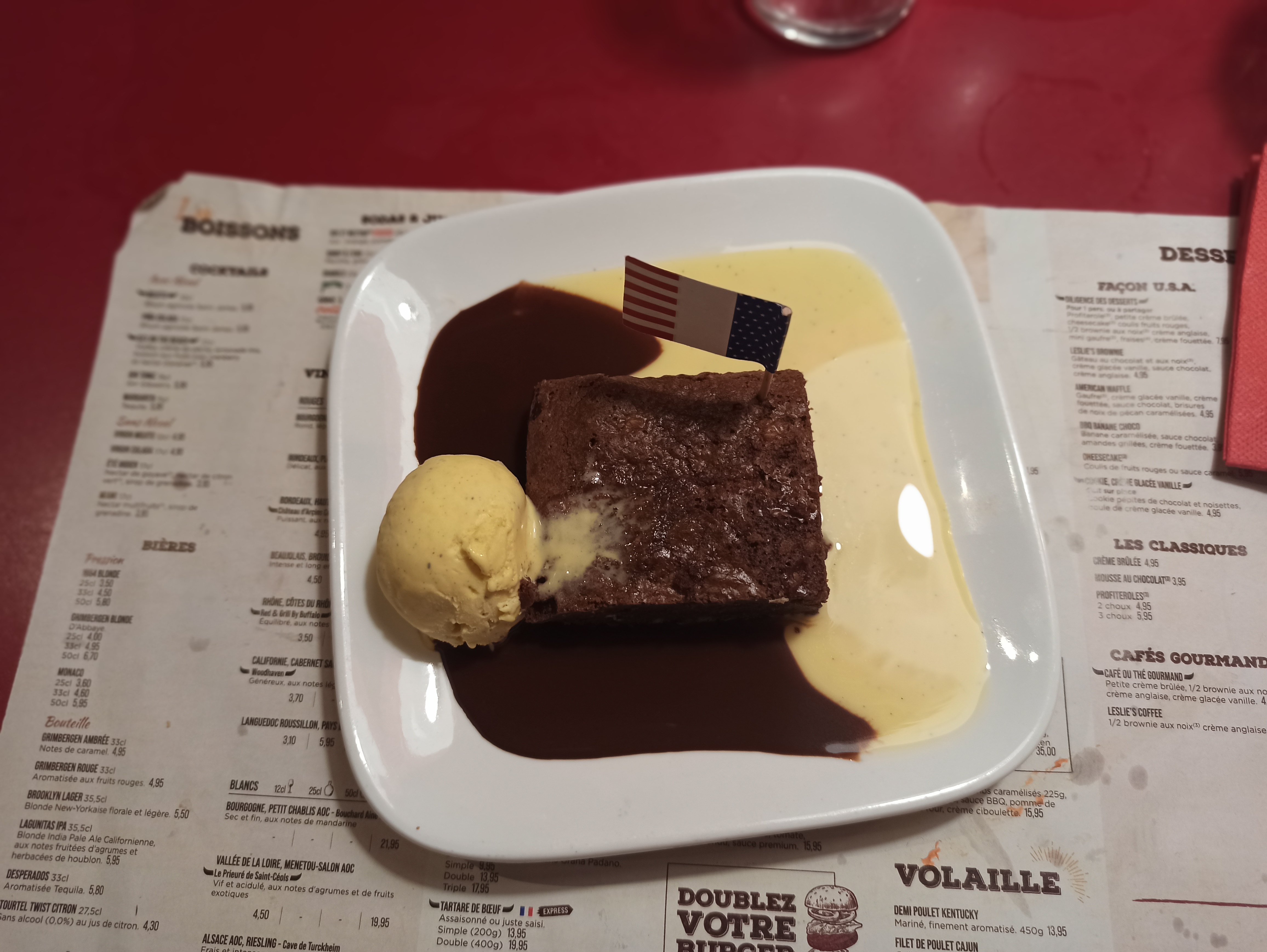 Un peu déçu ,bière chaude et oublie de noix de pécan dans le dessert. Un peu trop d' attente a mon goût dommage..