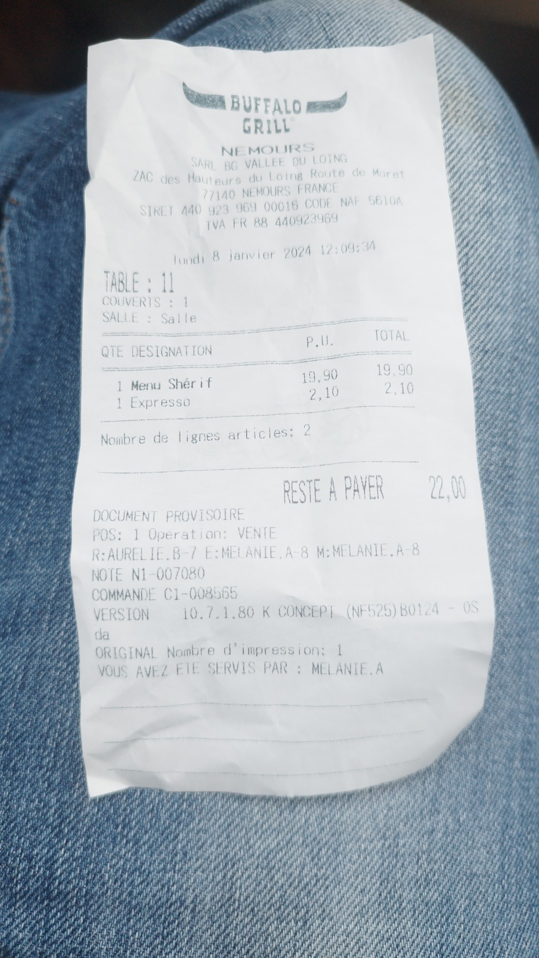 Service rapide équipe très sympathique. Un très bon moment passé au Buffalo de Nemours.