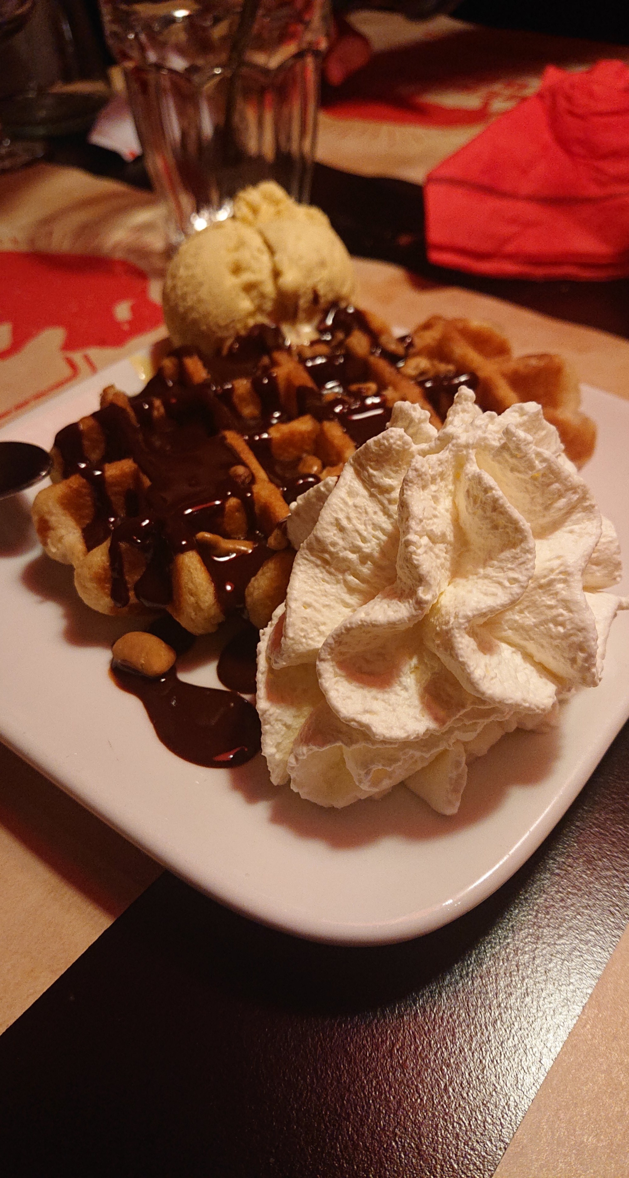Je me suis régalé c'était trop bon. Et le dessert 🍨 aussi. Le service était rapide la serveuse souriante franchement venez en famille c' est le top et l endroit est très moderne ya un coin pour les enfants franchement j ai passé un bon moment.