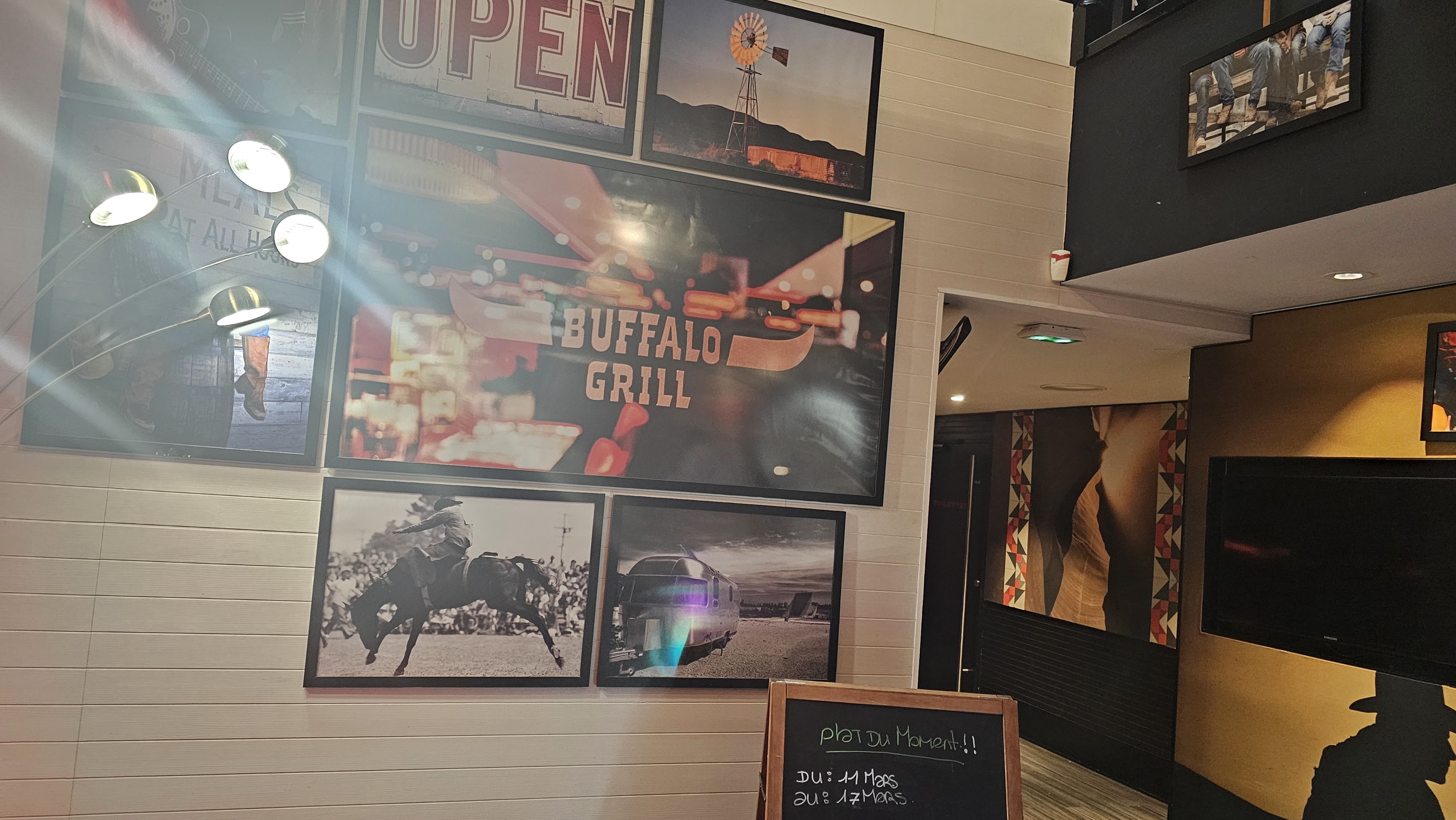 Déception totale !! Nous venions dîner en famille pour un anniversaire (choix de mon fils en souvenir de nos sorties au Buffalo quand il était enfant), quelle déconvenue !! Du service aux plats, tout manquait de sérieux et de professionnalisme. De l’apéro où les morceaux de citron vert n’en avaient plus que le nom, en passant par la salade d’accueil (j’ai compté : deux bouts de salade verte, 9 grains de maïs et 1 haricot rouge, véridique !), l’assiette du trappeur qui ne serait apparemment plus à la carte sans que l’on ne le mentionne, les starters RE réchauffés, la pomme de terre au four idem (grise et marron à l’intérieur) que j’ai refusée après avoir quand même tenté de la goûter, la côte de bœuf pleine de nerfs (mais était-ce même une côte de bœuf ?…). Et je n’accablerai pas plus le serveur qui visiblement n’avait ni expérience, ni formation particulière dans ce domaine… Bon, un loupé total à 150 euros ! Toujours tentés ?