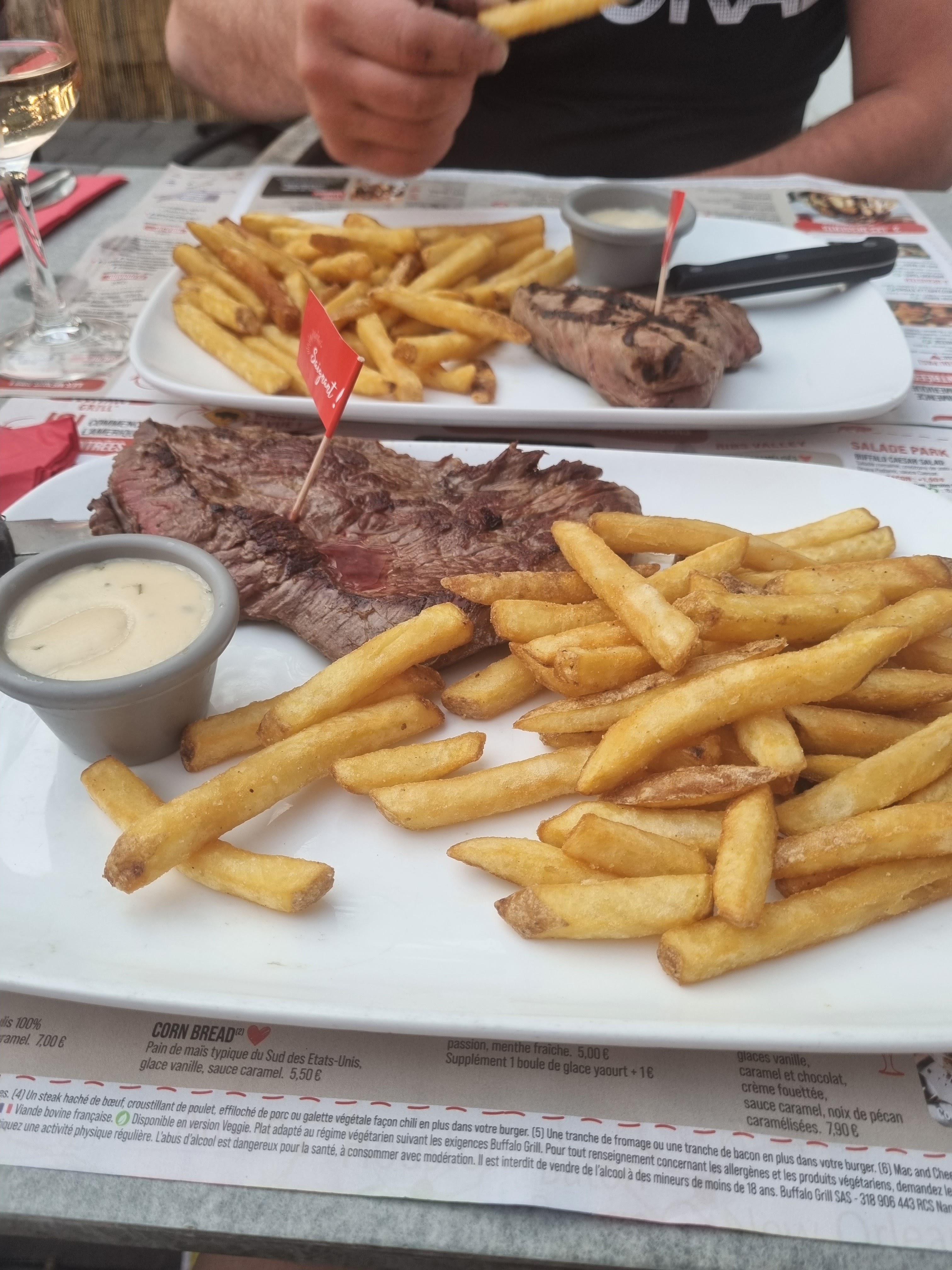 Que dire de notre repas .... déjà plus de 10min avant de trouver quelqu'un pour nous installer... Les tables avoisinantes même pas débarrassées... Nous n'avons jamais eu et vu un service aussi long ! La serveuse ne voulait peut être pas nous servir c'était très très long pour chaques choses : prise de commande, services, addition. Sans parler qu'il a fallu nous lever à chaque fois d'un besoin. Pas de salade de bienvenue pas de sel pas de poivre pas de moutarde ... personne ne se déplace. Malgré tout notre repas était bon d'où mes 2 étoiles. Veillez à avoir du temps pour prendre votre repas dans ce Buffalo.