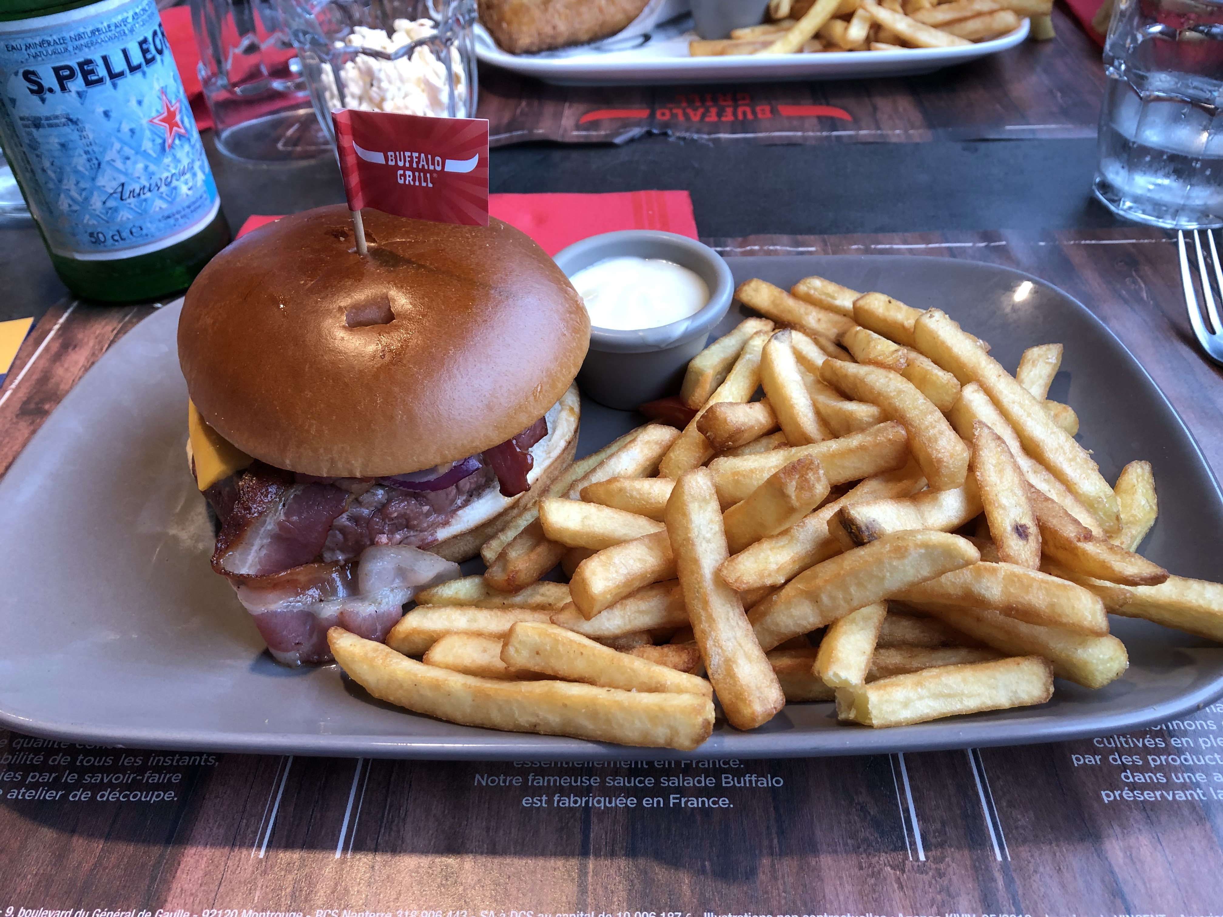 Première fois que je venais à Buffalo Grill depuis que je suis arrivée aux Sables-d'Olonne il y a 2 ans et demi. Sincèrement je suis très satisfaite, très bon accueil, très bon service et surtout succulent Burger raclette. Le mojito était bon mais dommage que la glace pilée était trop présente donc on ne sentait pas trop le rhum. La salade d'accueil offerte était bonne aussi.