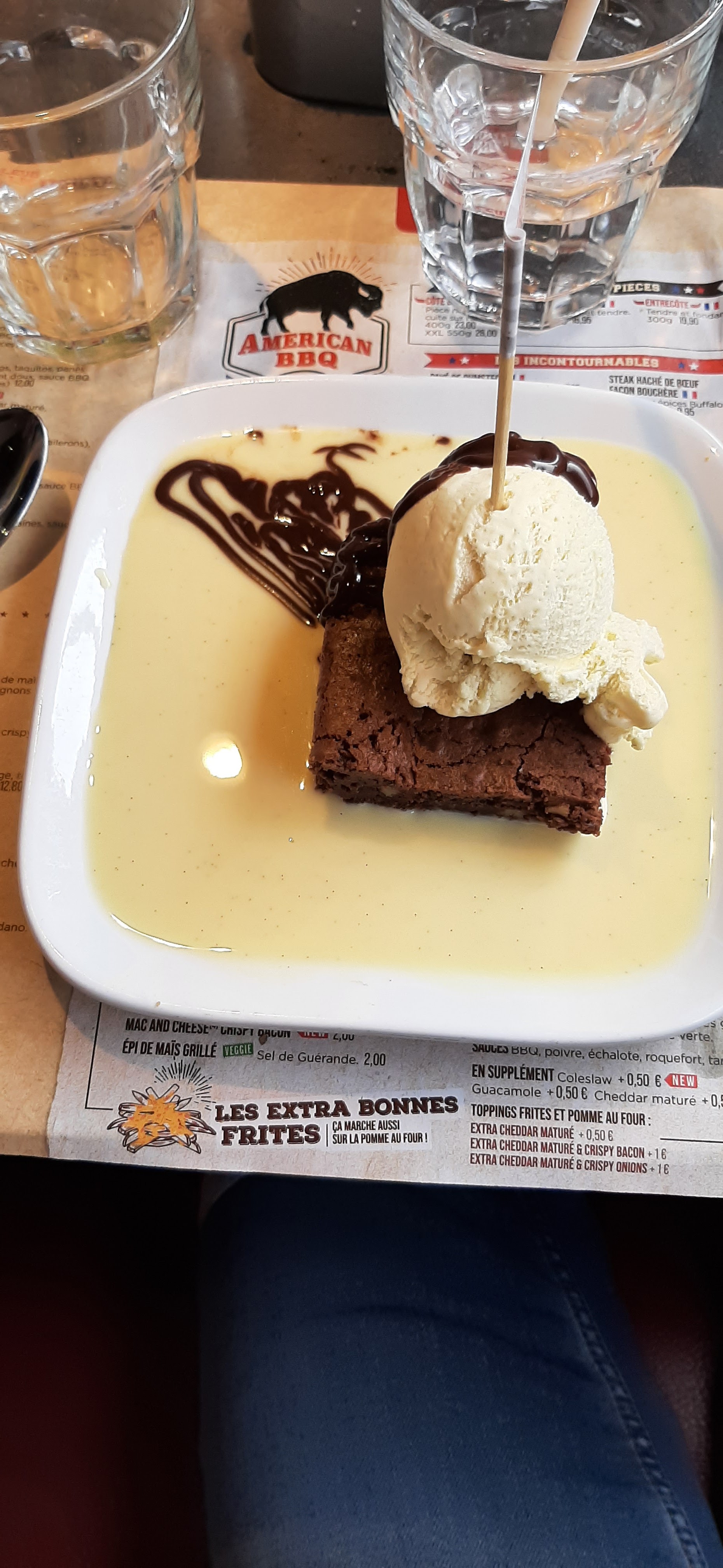 Accueil sympa, cadre cool, prix pas trop excessif pour la quantité. En revanche service très à revoir, une attente assez longue pour 3 burgers et une attente pas possible pour attendre des brownies. La serveuse étant partie en pause clope et lorsqu'elle revient apporter les desserts avec une forte odeur de cigarette, des cuillères sales donc obliger d'essayer de la retrouver mais elle est aussi présente qu'un fantôme.
