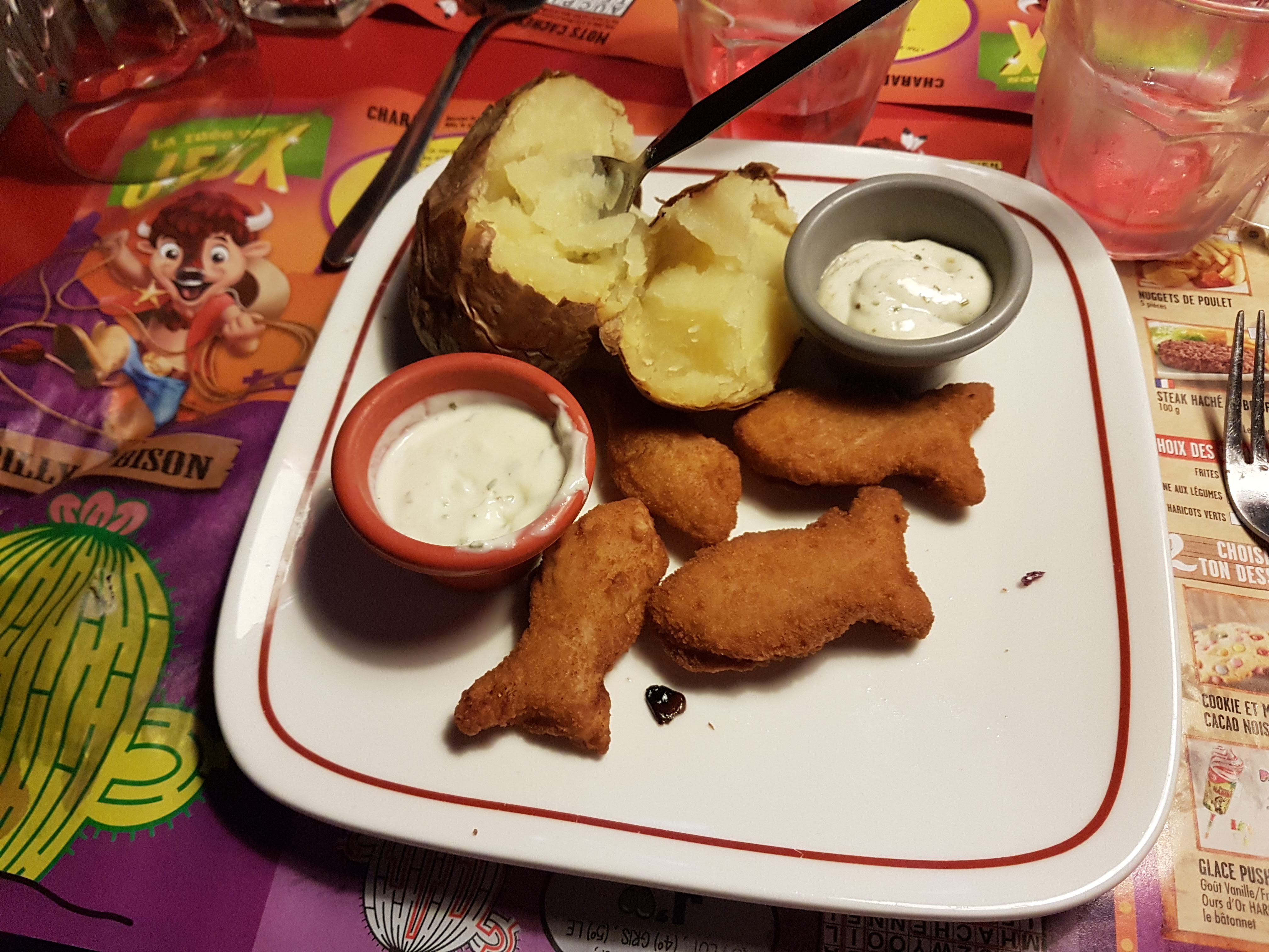 Service plutôt rapide ,quantité mal proportionné, pas de différence ce jour entre la quantité menu enfant et celui de l' adulte. La demi ribs très fine. Portion de frite identite à celui de ma fille. Serveur agréable Restaurant buffalo Olonne,13h30... Réduction de 10% effectué en caisse après avoir fait la remarque. Cependant la caissière semblait peu compréhensive par rapport à mes dires malgré les photos montrées. Elle m' a même dit que c'est plus qu' une demi ribs...()