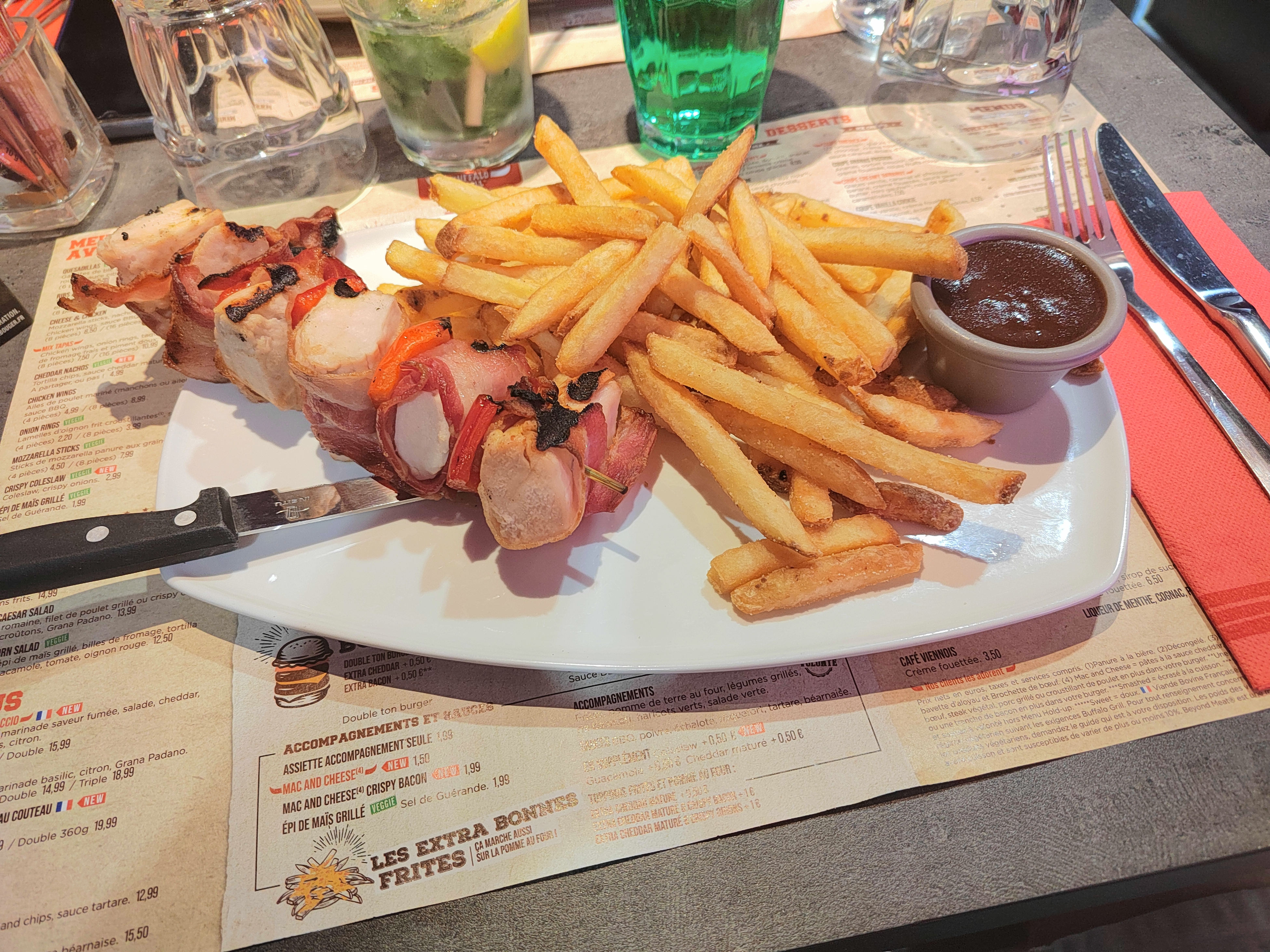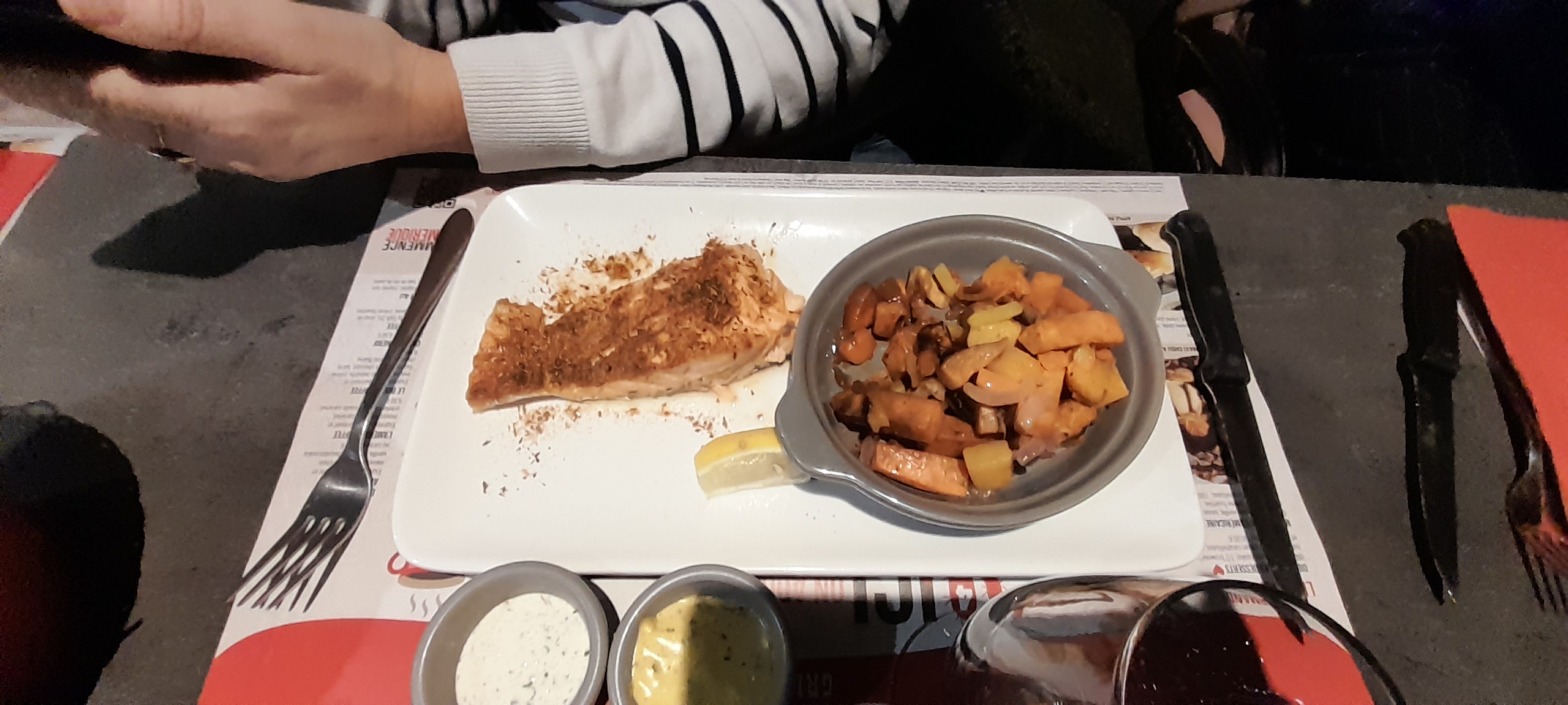Service au top avec Nathan génial par contre la bavette il yavais pas assez de goût et elle était dure à mâcher dommage et les frittes au top ce que je trouve bizarre c'est que les légumes était payant alors que normalement c'est légume à volonté c'est pas comme sur paris alors