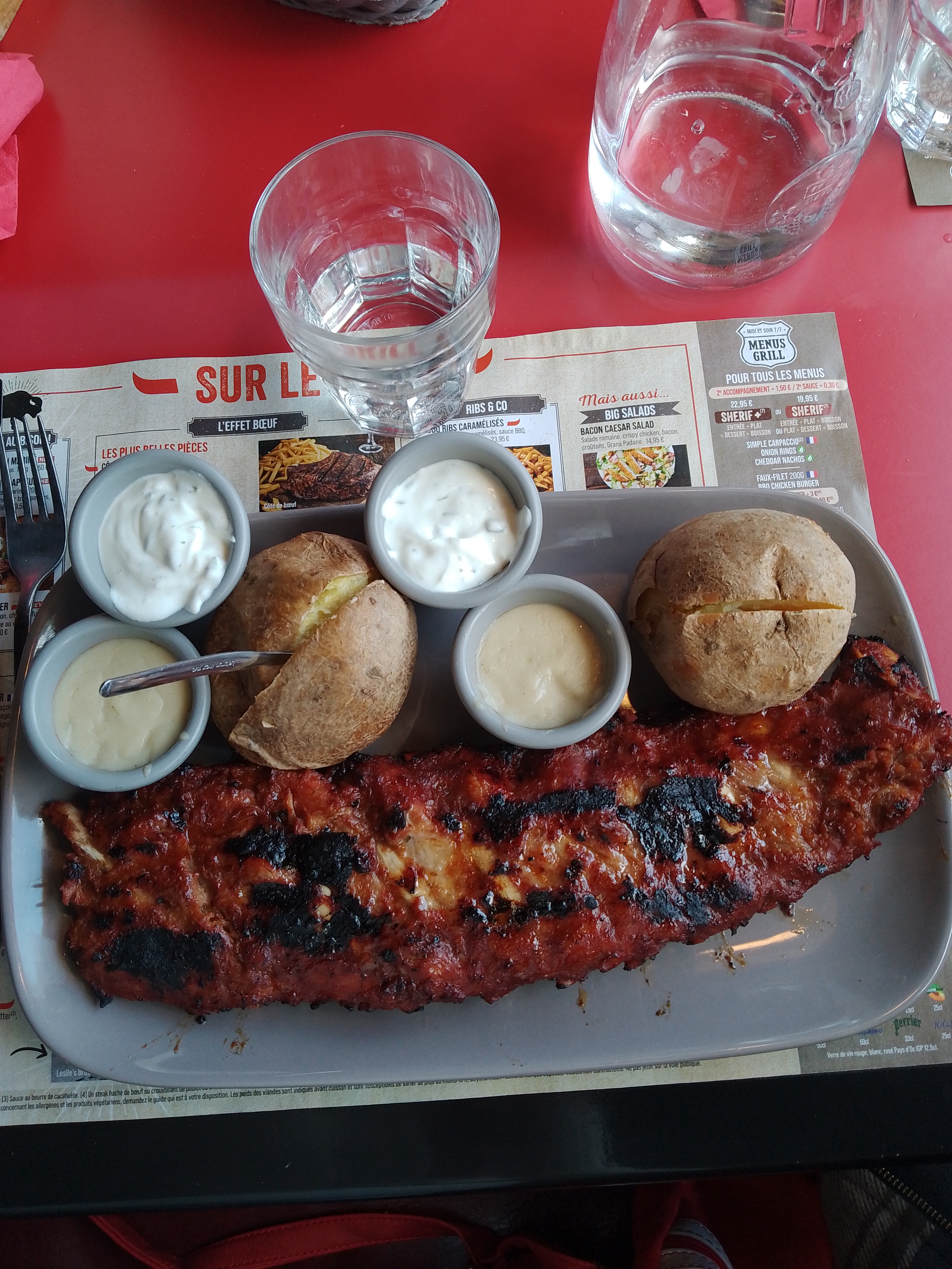 Mon ribs est un peu griller et in peu froid dans la salle mais j'ai quand même passer une bonne soiree service rapide serveur Martin très agréable et professionnel