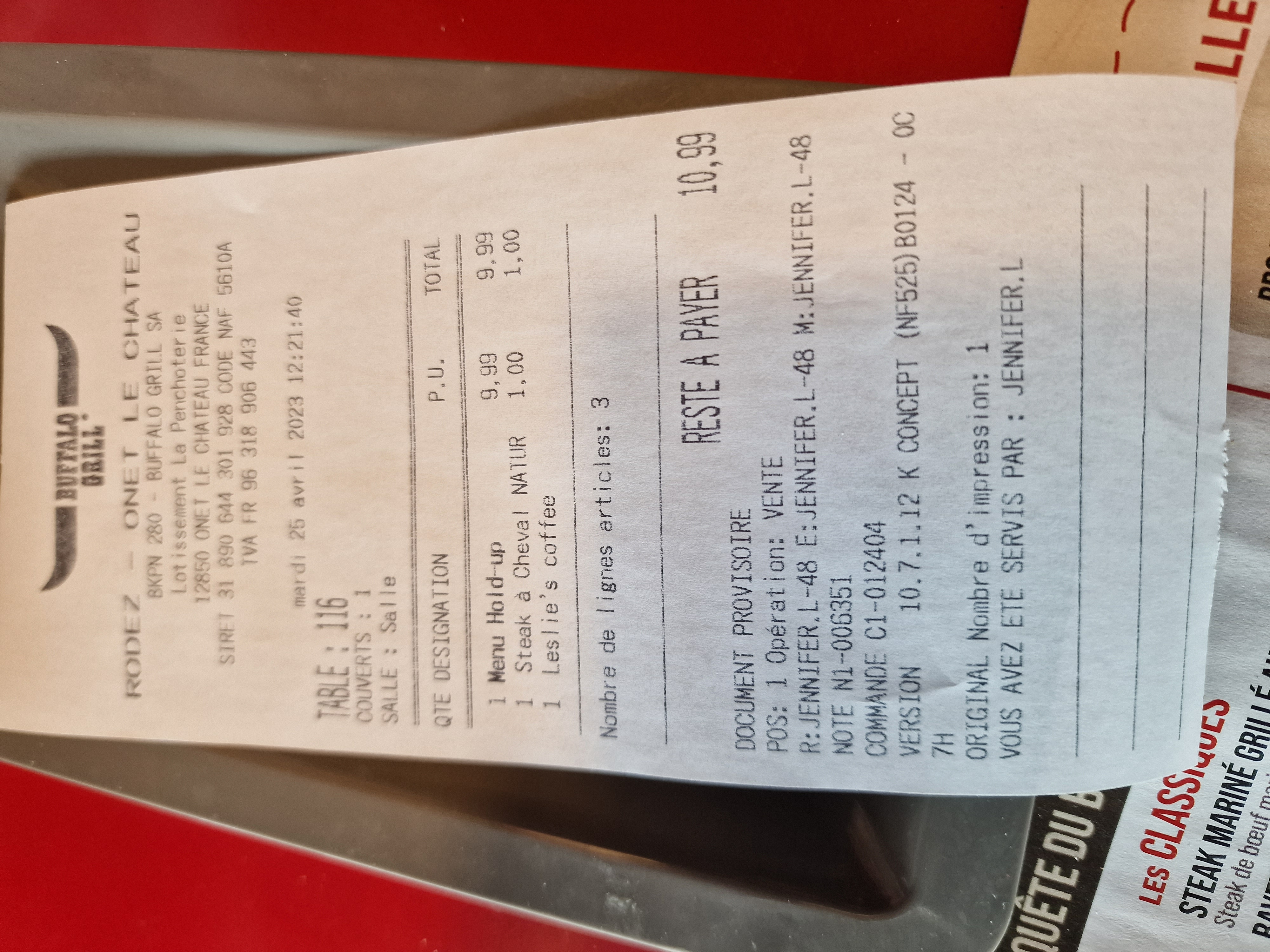 Merci Buffalo Grill Onet-le-Chateau , c'était notre 1er passage mais on s'est bien régaler, on vous dit à la prochaine.