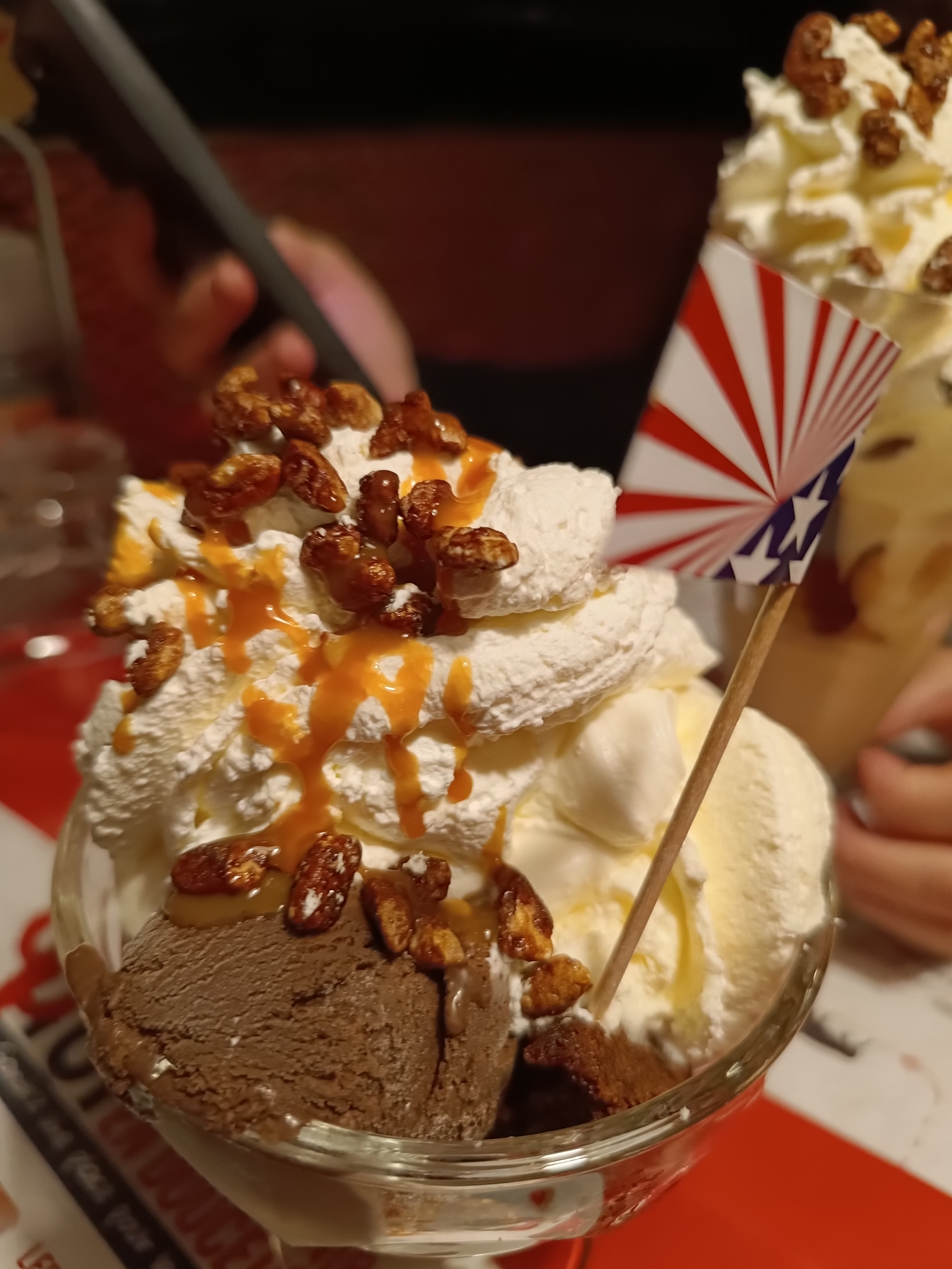 Expérience très agréable que de dîner avec un collègue en terrasse lors des premiers beaux jours. Nous avons terminé par cette délicieuse glace pour laquelle il faut ajouter un supplément. (amplement raisonnable) Le personnel est agréable et souriant, les plats sont comme ce que l'on s'attend à retrouver dans cette chaîne.