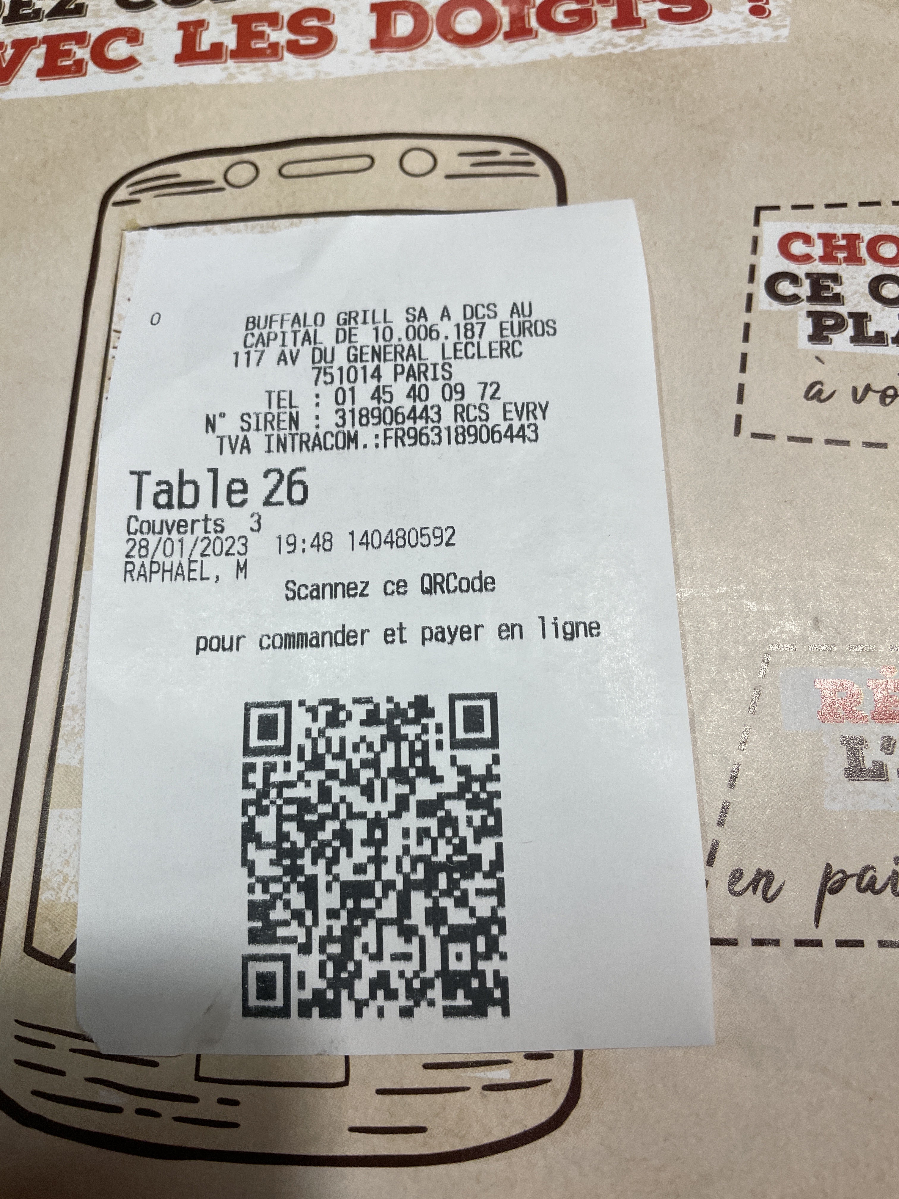 Venus il y a 2 semaines, très contents du service de notre serveur Laurent. Ce soir, soirée très décevante en termes de service. Notre serveur nous a juste balancé un QR CODE sur la table et n'a pas parlé du repas, sauf au moment du dessert. Vu que nous avons l'application, nous n'avions pas besoin de son aide à la fin !!! (Merci Nana pour l'écoute apporté à notre paiement à la caisse)