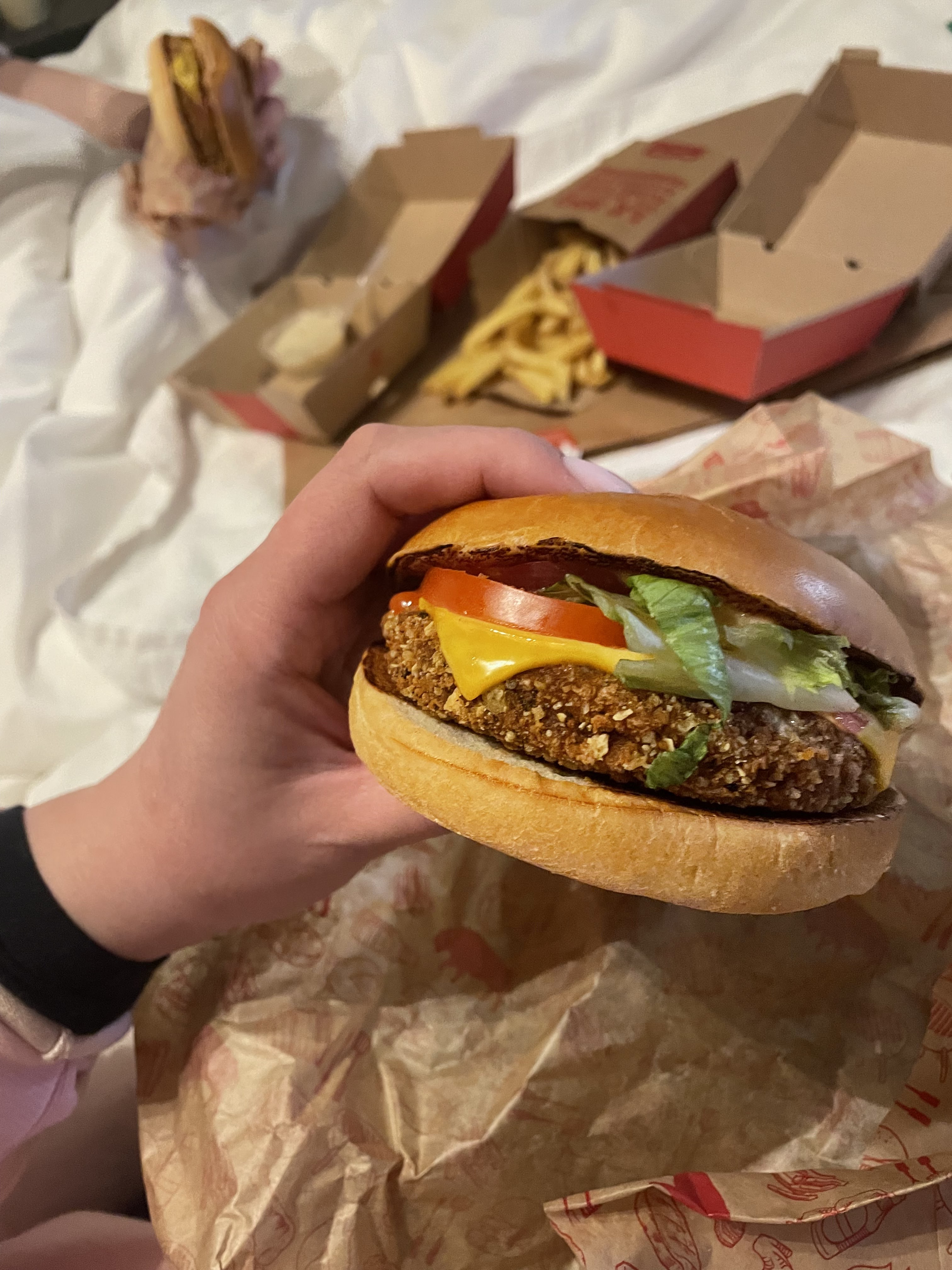 La nourriture était bonne, nous avons commandé des burgers végétariens, la sauce roqcuefort est vraiment bonne ! Le personnel a été un peu surpris lorsque nous sommes allés chercher les plats à emporter, je suppose que ce n'est pas si courant, de toute façon, le personnel est adorable, la nourriture était bonne !😊