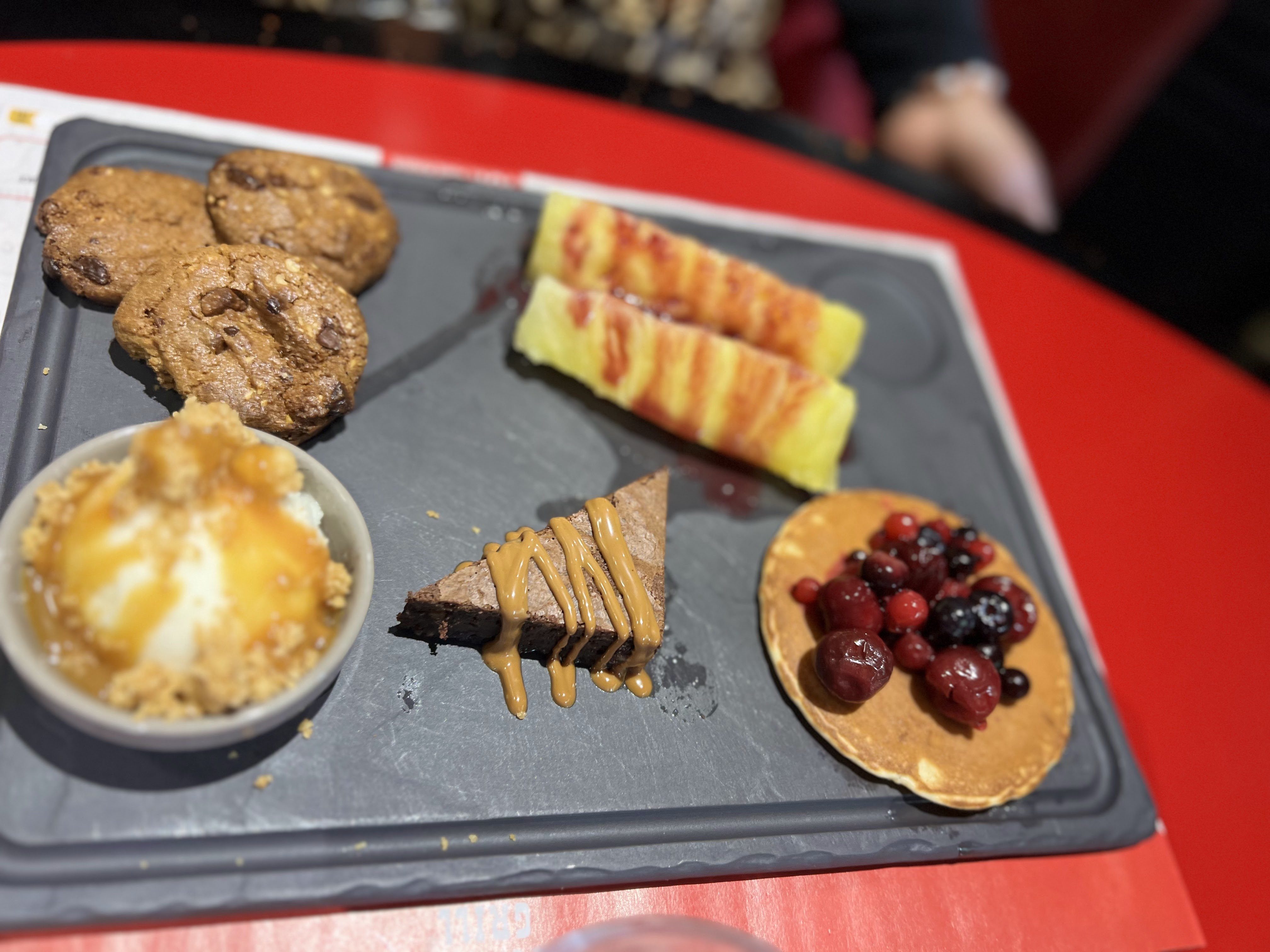 J'ai adoré l'endroit. Nous avons essayé un nouveau burger cette fois-ci et cela s'est avéré incroyable. On opte toujours pour le seau Mix tapas pour 2, c'est délicieux. Je n'ai pas aimé tous les desserts car ils sont trop lourds et pleins de crème fouettée. Vous recevez une grande assiette de brownie avec de la crème comme dessert gratuit le jour de votre anniversaire ☺️ Ils mettent des bougies et jouent des chansons d'anniversaire pour que vous vous sentiez spécial ❤️
