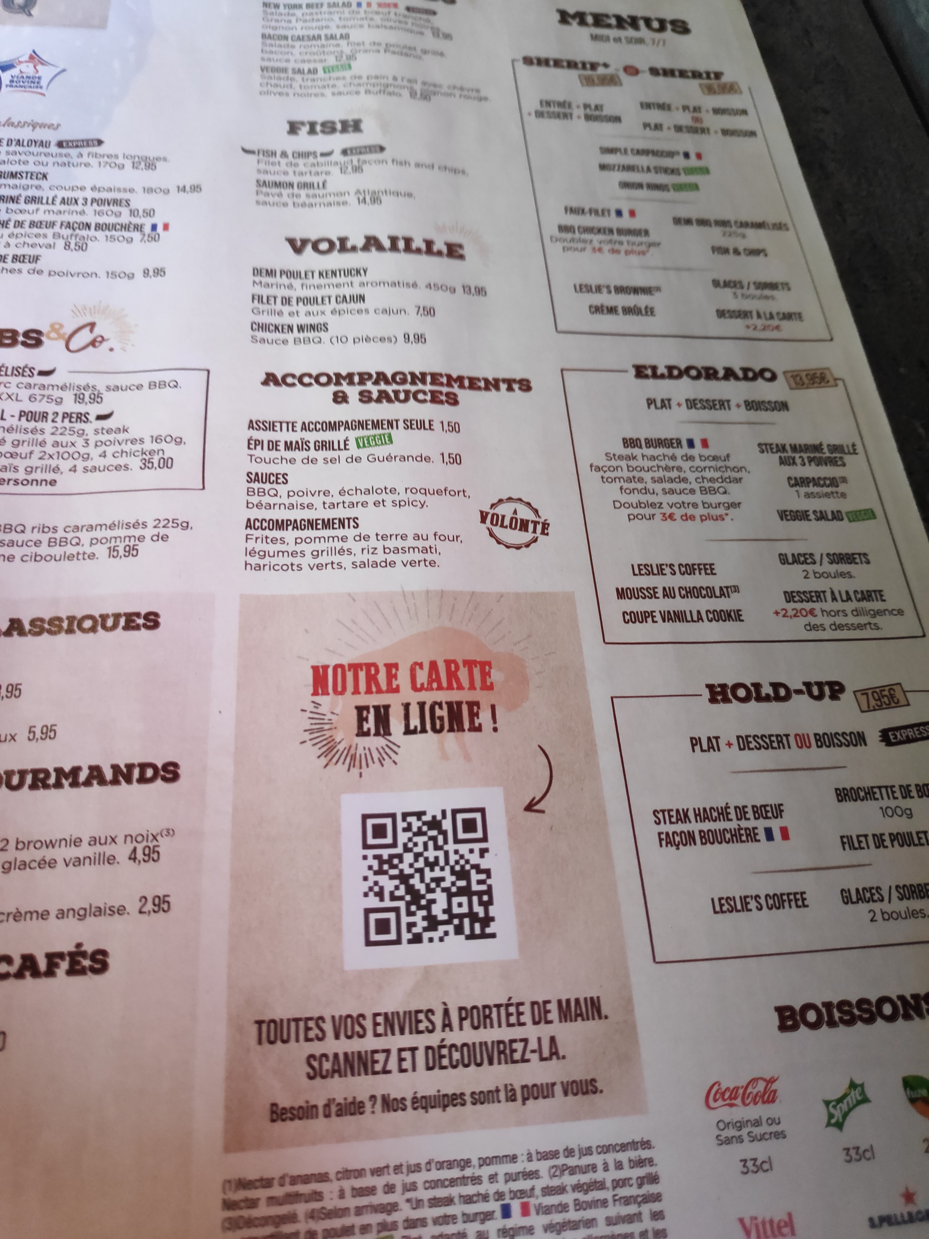 Je suis surpris sur tout les changements le steak des menus enfants et ridicule les portion diminuer et le prix lui pour tout les supplément à bien augmenté je suis déçu..