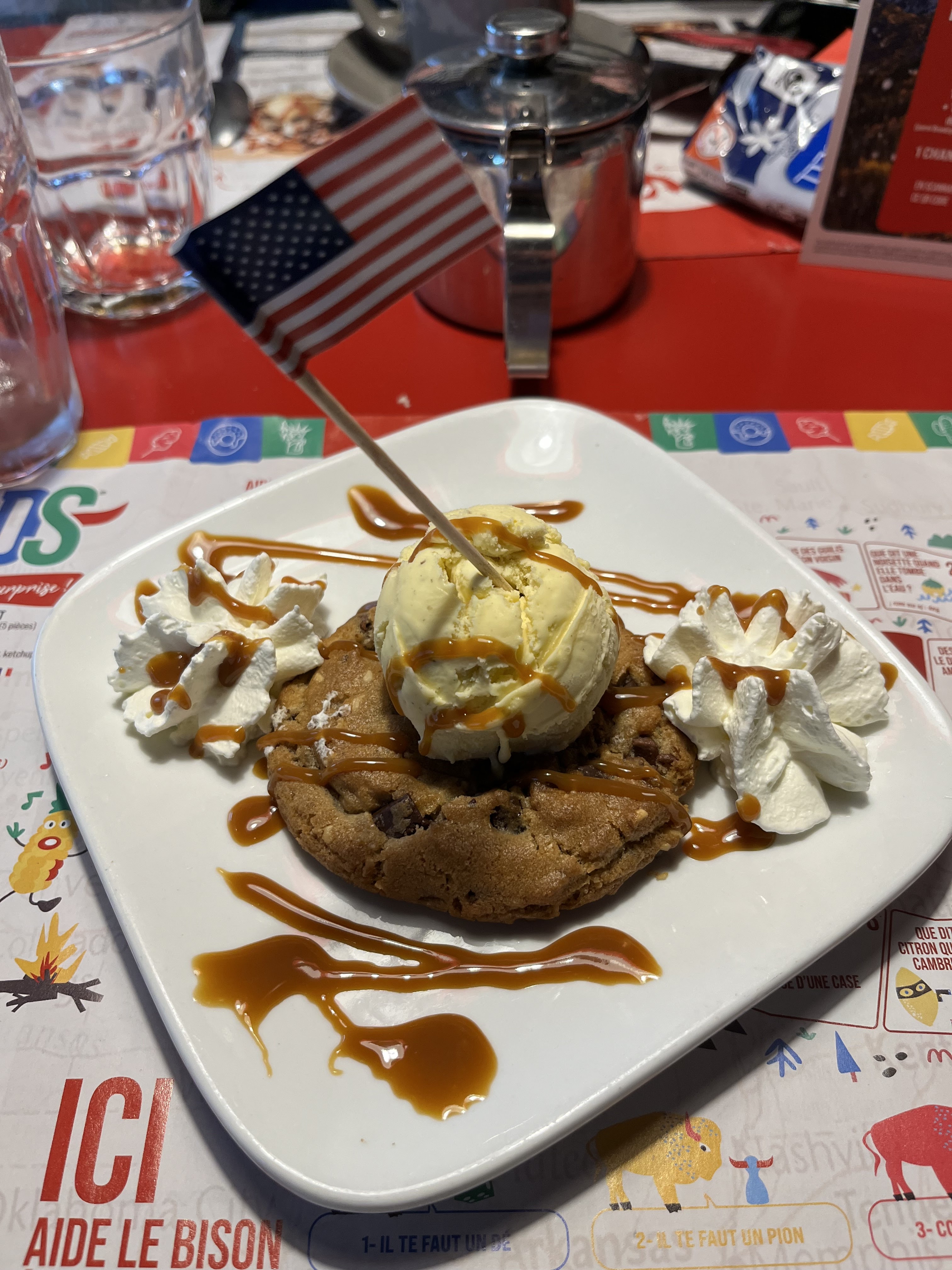 Heureusement que nous avons été servis par Nathan qui a assuré, concernant les plats c'était pas terrible. Merci pour le gâteau d'anniversaire et la chanson des indiens mais nous n'avons pas très bien mangé.