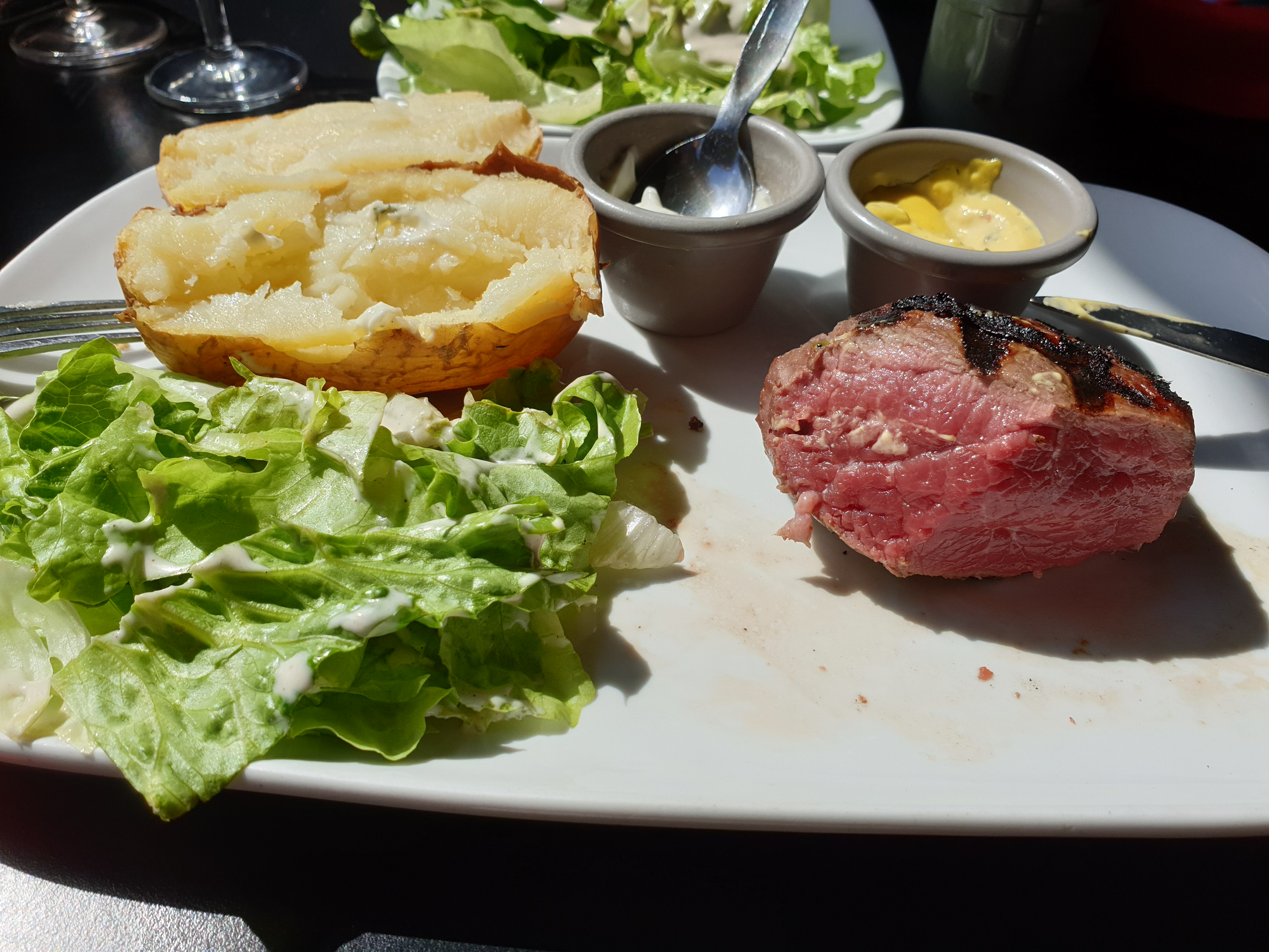 Très moyen faux filet du menu shérif tout plat, frites surgelées et desserts pas maison pour un prix moyen donc l’ensemble très moyen, dommage le concept est bon mais il faudrait améliorer la qualité (et marger un peu moins…)