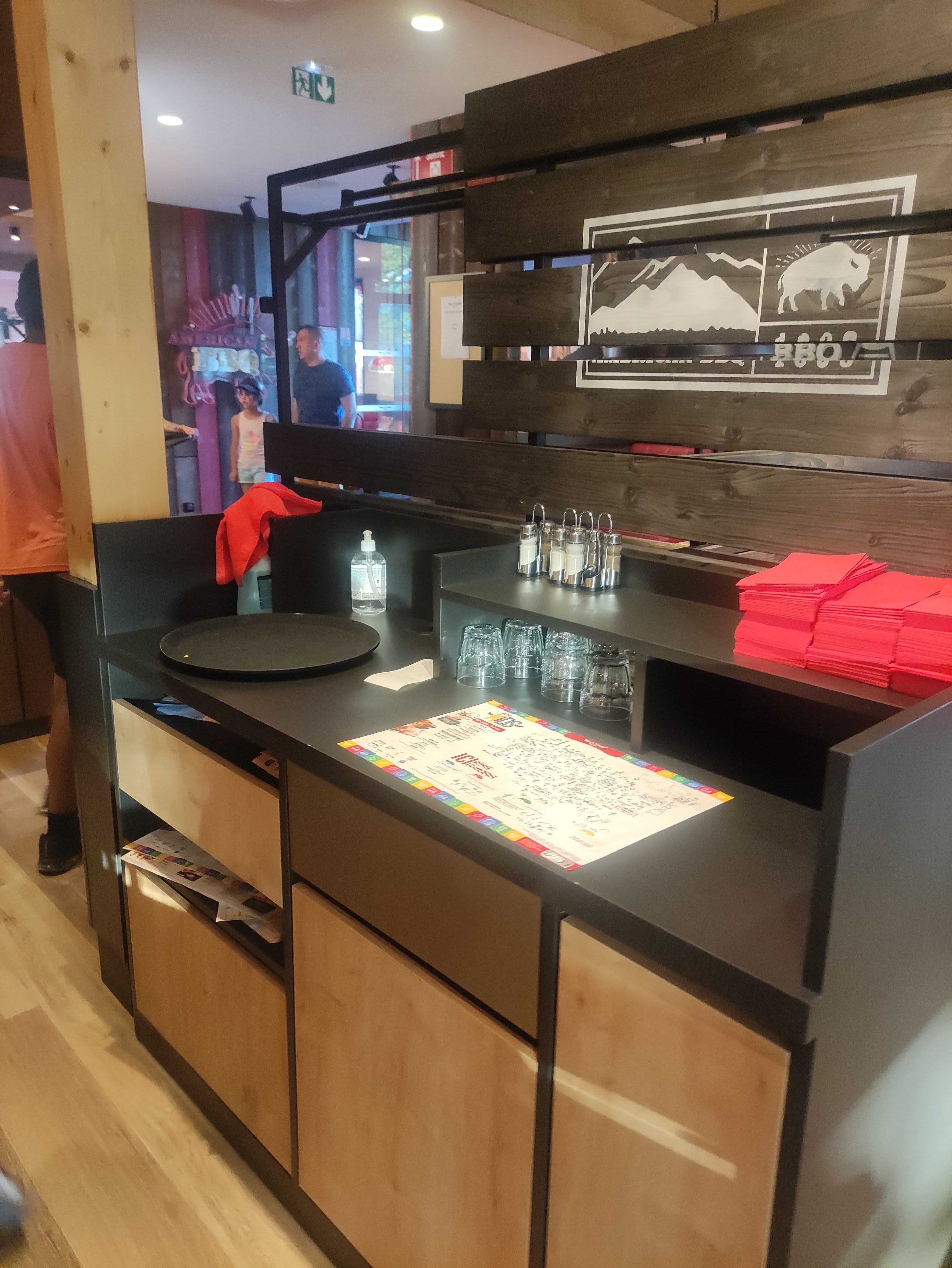 Était le week end dernier, j ai été très déçu. Arrivé à 19h15 on nous a dis 20-30min d attente, ensuite attendu 40min avant qu on viennent nous voir pour la commande . Les plats enfants servis dans des corbeilles pas pratique ni esthétique, les ribs pas caramélisés du tout limite en purée , la sauce était froide, l assiette du trappeur saignante était bleu ! Le dessert l ananas 2 morceaux posés dans l assiette , sorte de coulis passion couper à l eau était très acide et la menthe a été oublié . Les serveurs pas très dynamique ni souriant . Bref rien à voir avec les autres Buffalo … heureusement qu on a eu un geste commercial sur la note