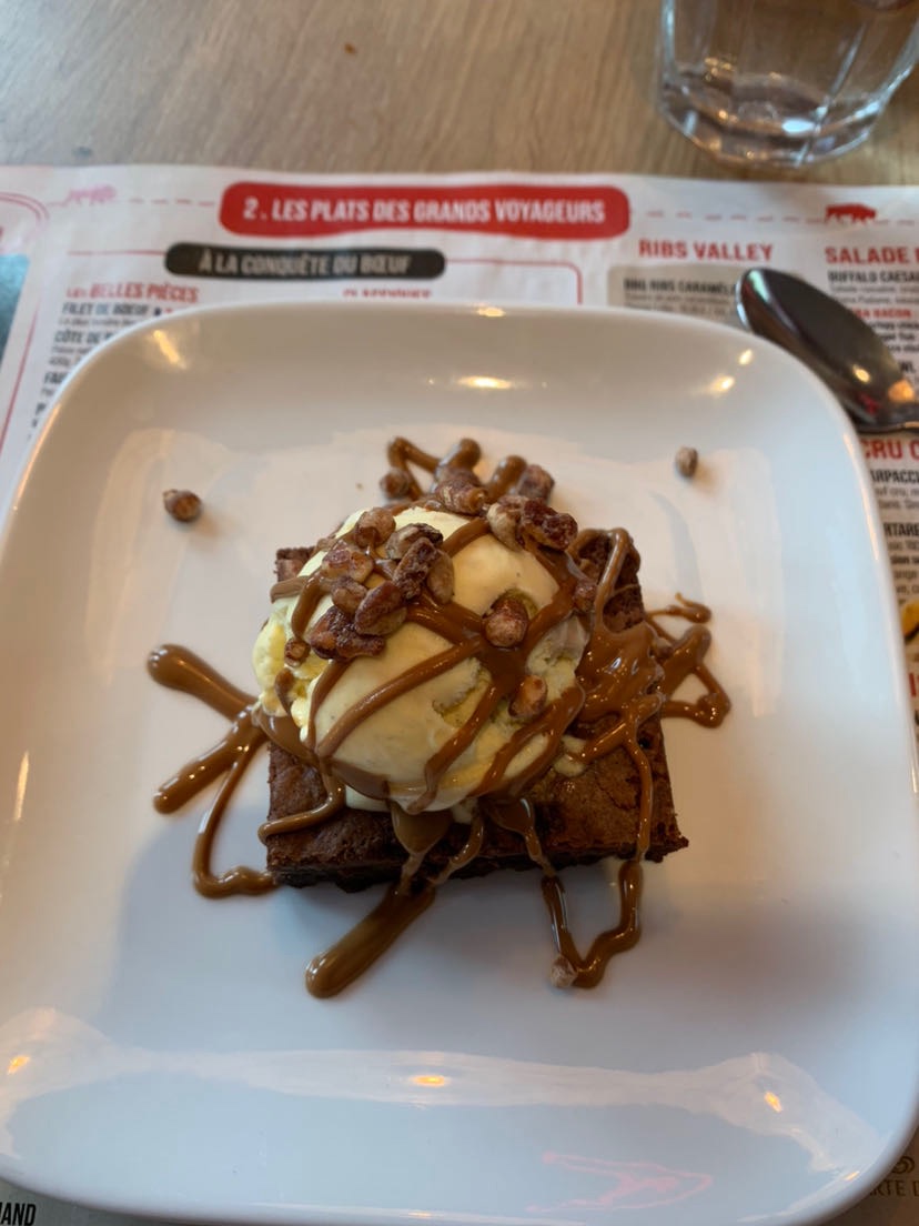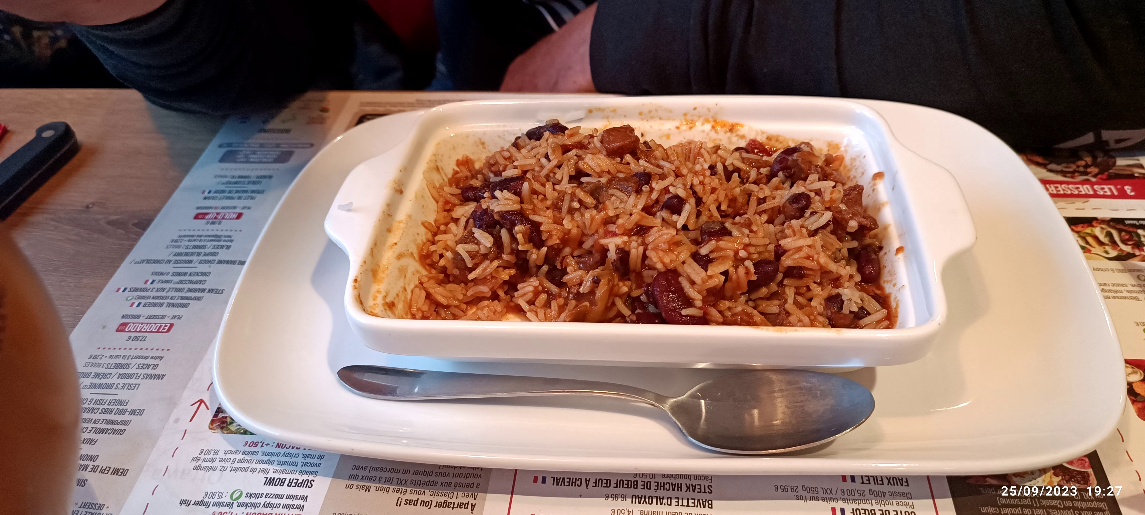 Service très rapide ont aurez dit à la cantine Brochette de bœuf avec des nerfs En.ce qui concerne le dessert Bbq banane j ai demandé pas de crème fouetté mais à la place un peu plus de chocolat pour payé 0,50 cts en plus Certains restaurants ne font pas payé et une boules de glace aussi en supplément !!!!! En ressortant nous avions faim !!!!!