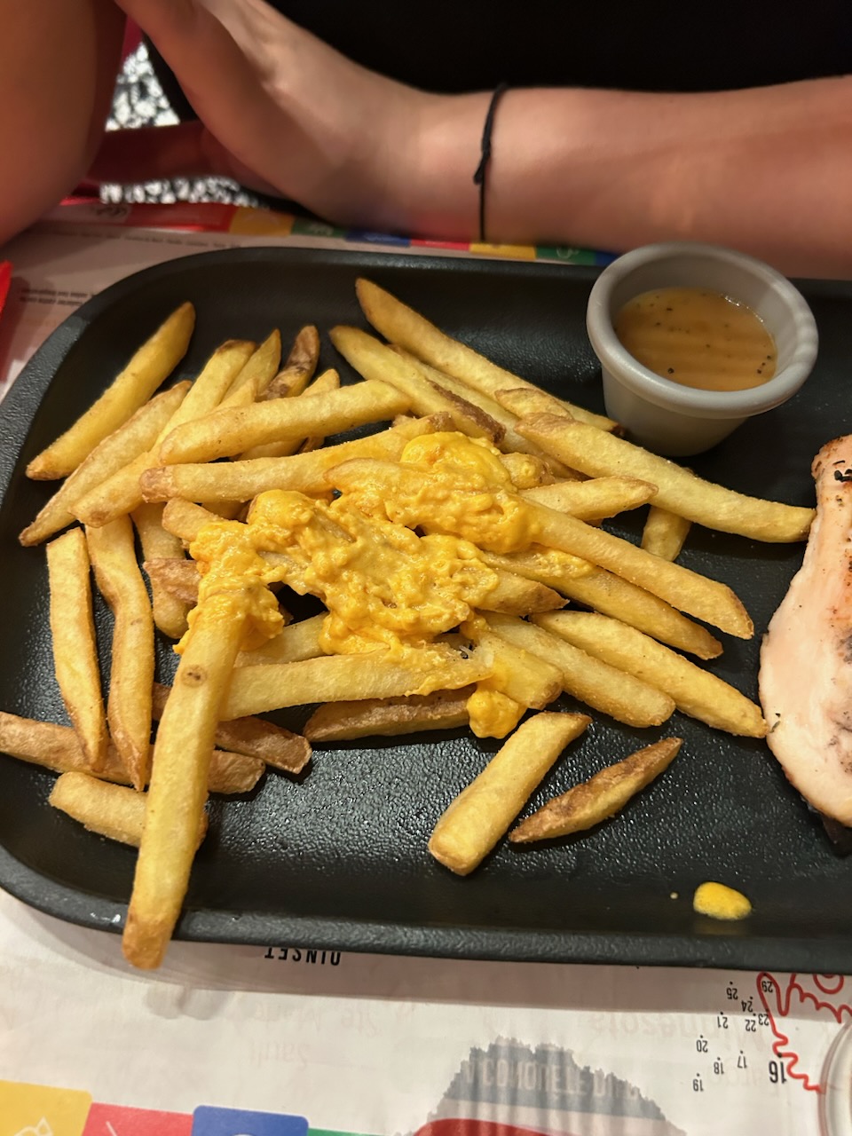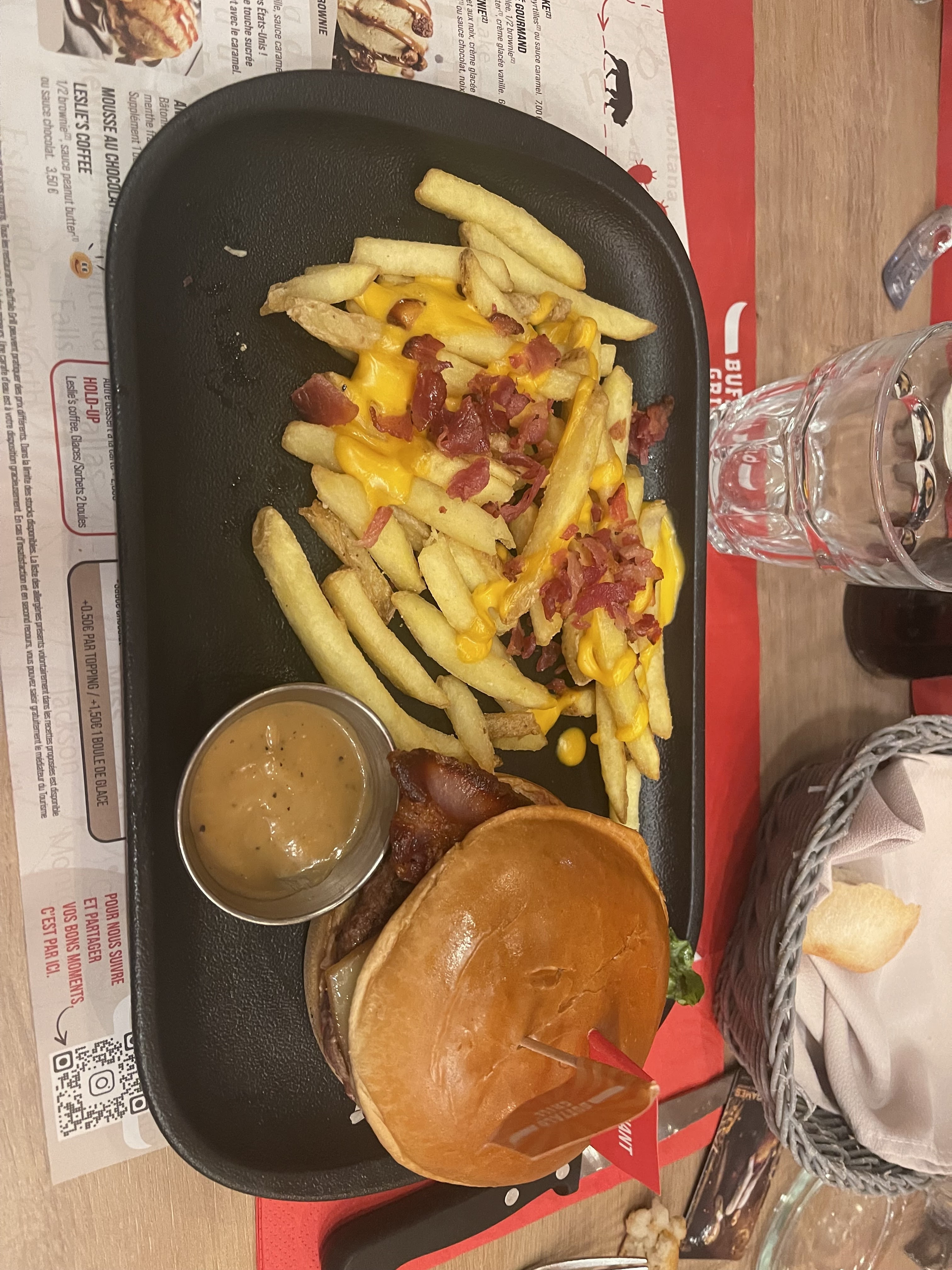 Nous nous sommes rendu au restaurant un vendredi soir et c’était calme, l’ambiance était super et la serveuse Casandra était super sympa en nous présentant les plats du jour. Nous avons pu faire notre commande avec le QrCode et c’était super facile d’utilisation ! La seule chose qui m’a chagrinée hormis l’attente des plats c’est la quantité de cheddar sur les frites. On paye 0,50ct pour avoir un supplément et nous n’avons qu’une petite boulette au milieu…Dommage sinon j’ai passé un bon moment.