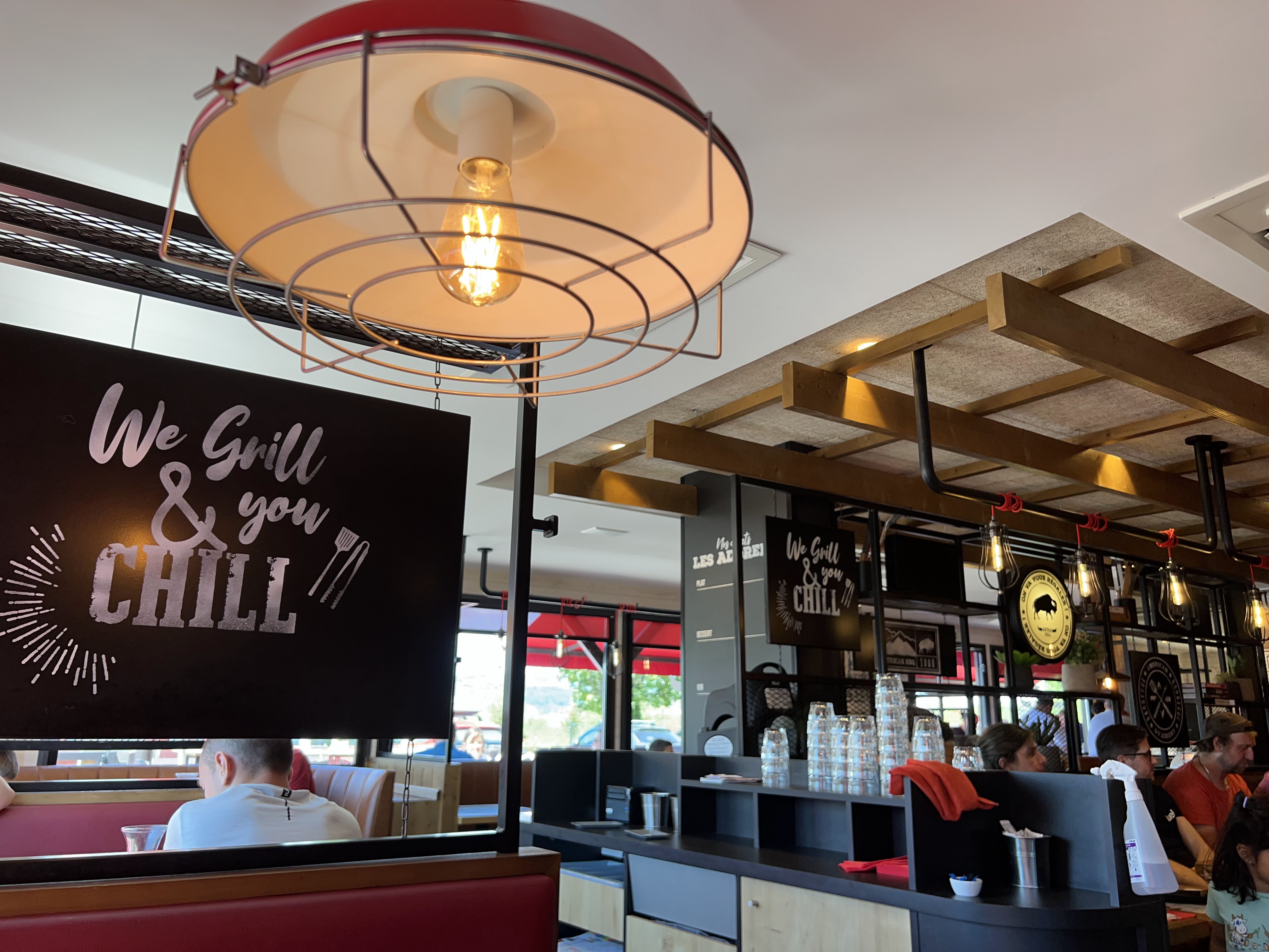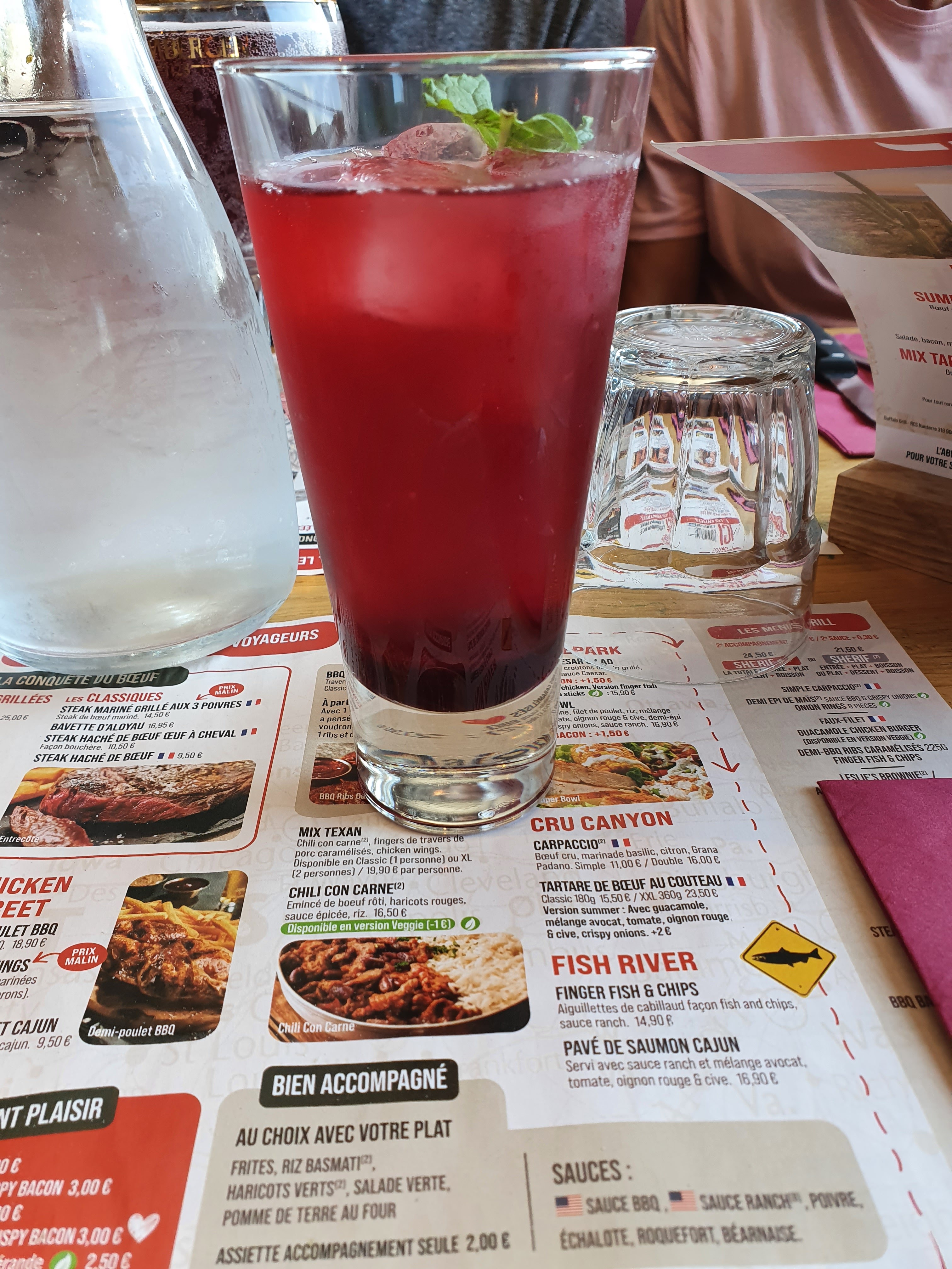 Je reviens tout juste du Buffalo grille ambiance convivial mes déçu un peu du service passé commande et bien sûr à boire tout le monde a ma table à reçu ce qu'il avait commandé sauf moi (pour ma boisson j'avais commandé un ice tea)j'ai essayé à plusieurs reprises d'appeler une serveuse et comme si j'étais invisible j'ai jamais pauser d'avis sur les restaurants j'étais moi-même du métier ya une 10 ans en arrière (serveur) un peu déçu de ce repas ils nous on même pas proposé une carafe d'eau enfin bon 1er et sûrement la dernière fois que j'irai dans ce restaurant