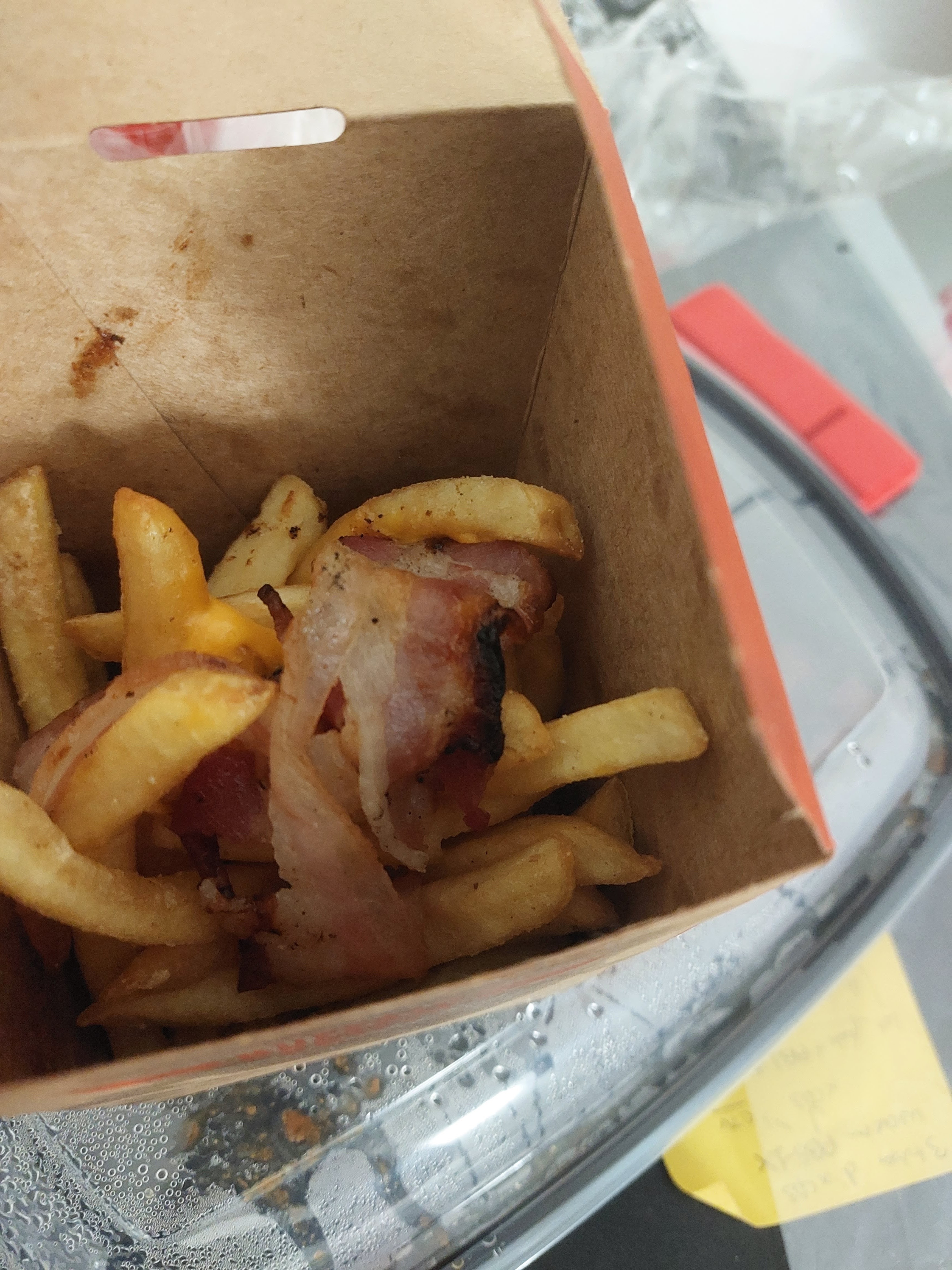 Bonsoir, Nous venons de commander chez eux et dans la commande on demande des frites avec cheddar et bacon et il y a du cheddar et de morceaux de bacon sur une frite. Si j'avais voulu juste des frites j'aurais demandé que des frites. Même burger King en même partout.... ridicule Buffalo grill et la quantité de pâte dans le plat ne tuerai pas 3 pattes à un canard. Vraiment dégoûté.
