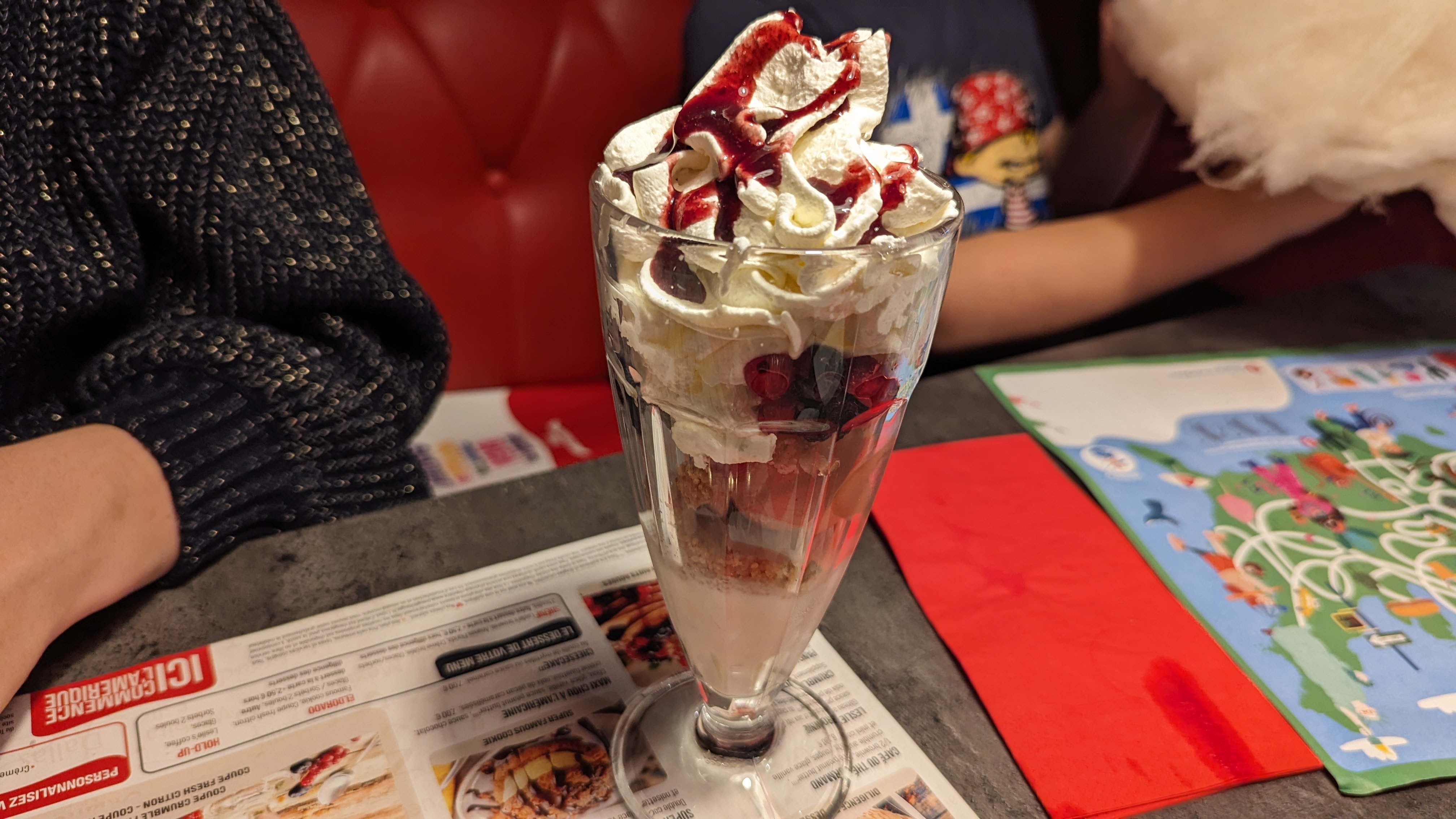 Plutôt bien dans l’ensemble. Plat copieux, burger très bon, glace aussi excellente. Petit bémol sur les couteaux car ce sont des couteaux à beurre et non à viande.. Un peu compliqué de couper son burger. Service un peu long à notre goût.