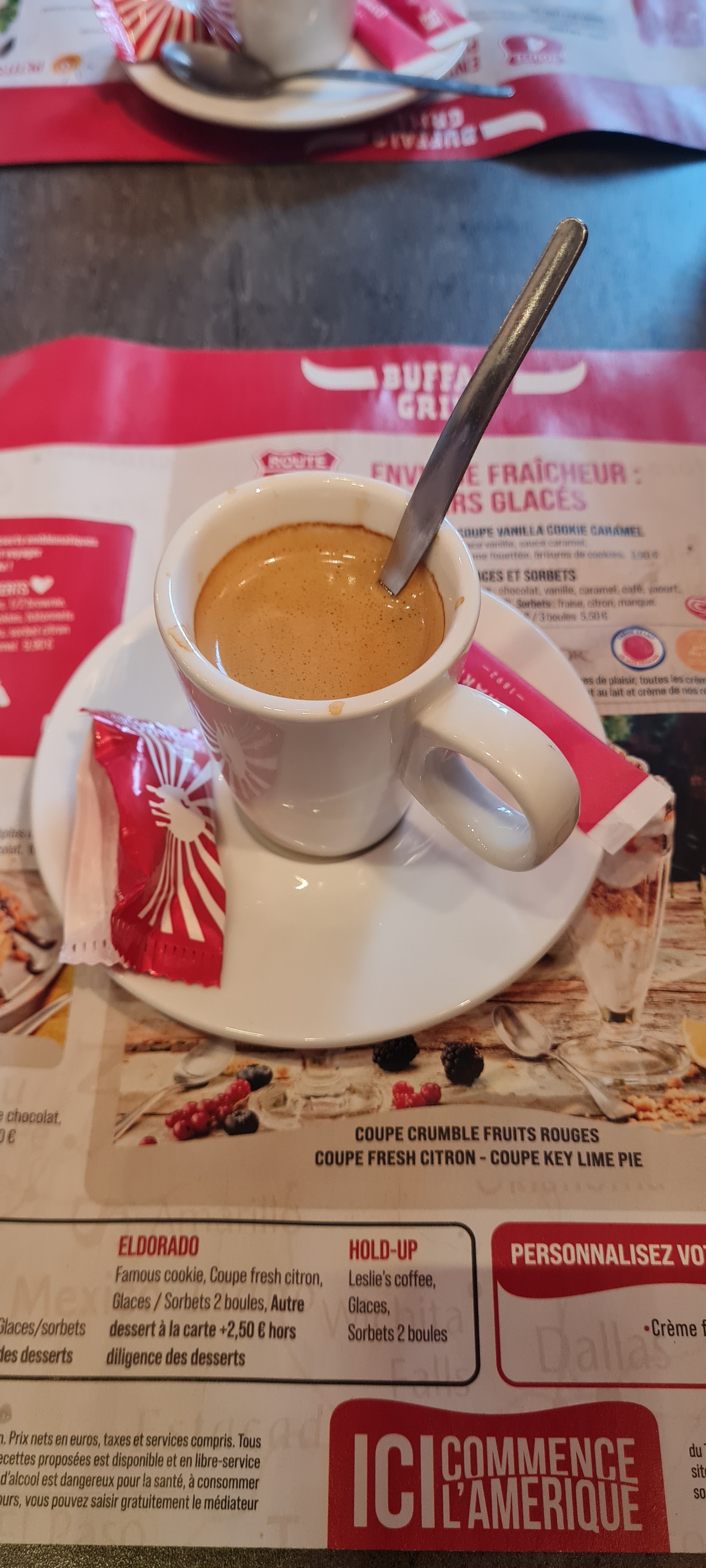 Dommage que l’on peut pas mettre moins car sa mérite même pas 1 étoiles . Déjà déçu une 1ere fois de ce restaurant, nous avons voulu retenter à ce jour mais encore pire que la première fois. Serveur pas aimable du tout, très hautin. Nous sommes arriver à 21h nous avons tout commander en même temps ( boisson repas dessert café …). Déjà vous commandez quelques chose en boisson on vous sert autre chose mais il oublie pas de vous facturer la chose que vous avez belle et bien commande ( coca cherry commander on m’a apporter un coca cola normal ).Nous avons été servi sur les coups de 22h00 pour faire cuire 1 ribs et une entrecôte de bœuf( très mauvaise qualité! ) plus de gras que de viande à manger, de plus après autant de temps nous espérions manger chaud et bah ça a été tout l’inverse assiette froide,frite pas assez cuite, et en supplément nous sommes reparti avec le commentaire du serveur de « ne pas oublier de passer au comptoir réglé » quand nous lui avons dit ce qui n’allais pas. Franchement j’ai connue Buffalo bien mieux que celui ci, je ne le recommande pas tout.