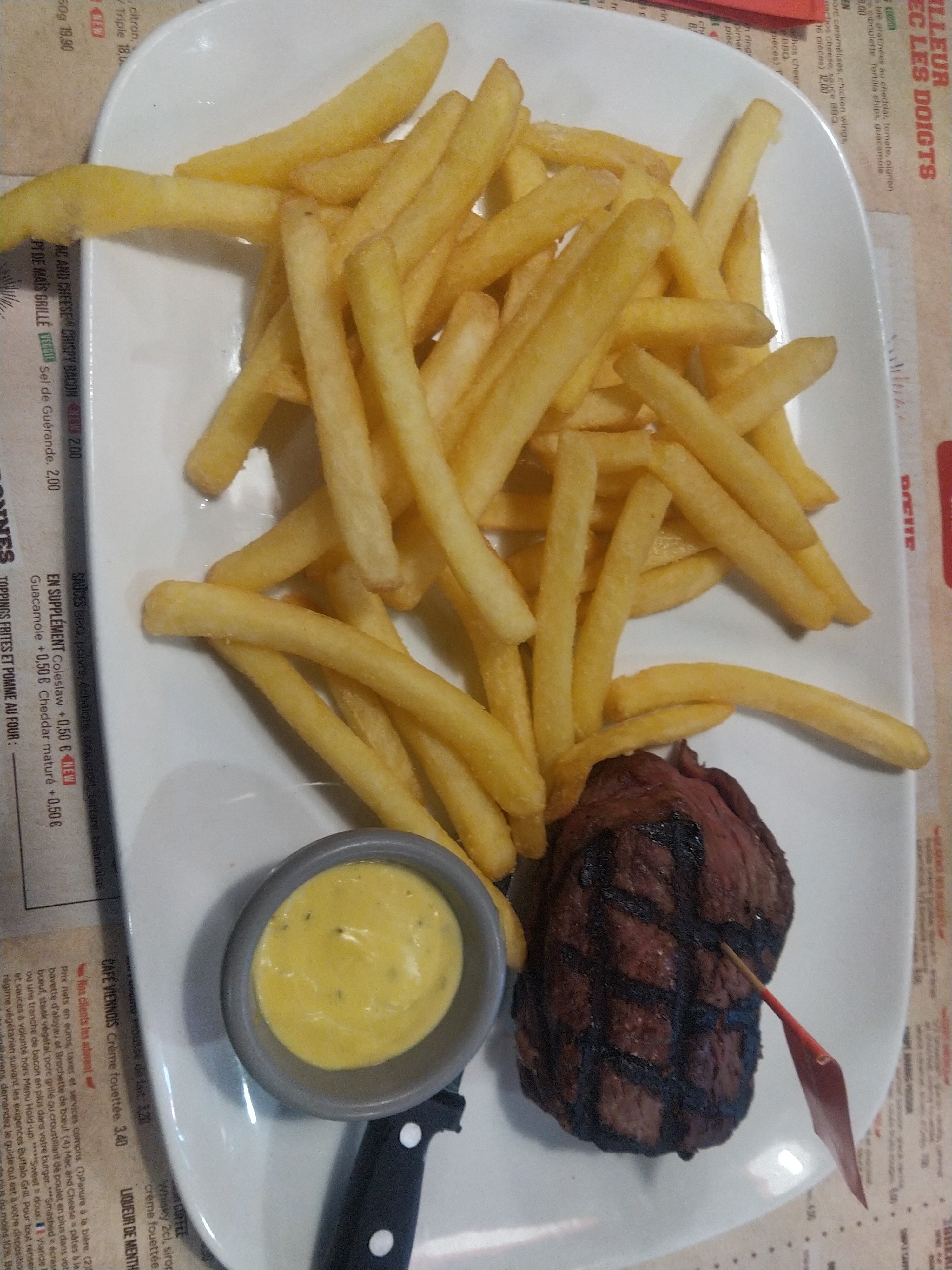 Très bon restaurant avec une belle décoration, personnel aimable et serviable et tout ce que nous avons mangé était délicieux 😋. Buffalo grill, un restaurant que je recommande les yeux fermés.