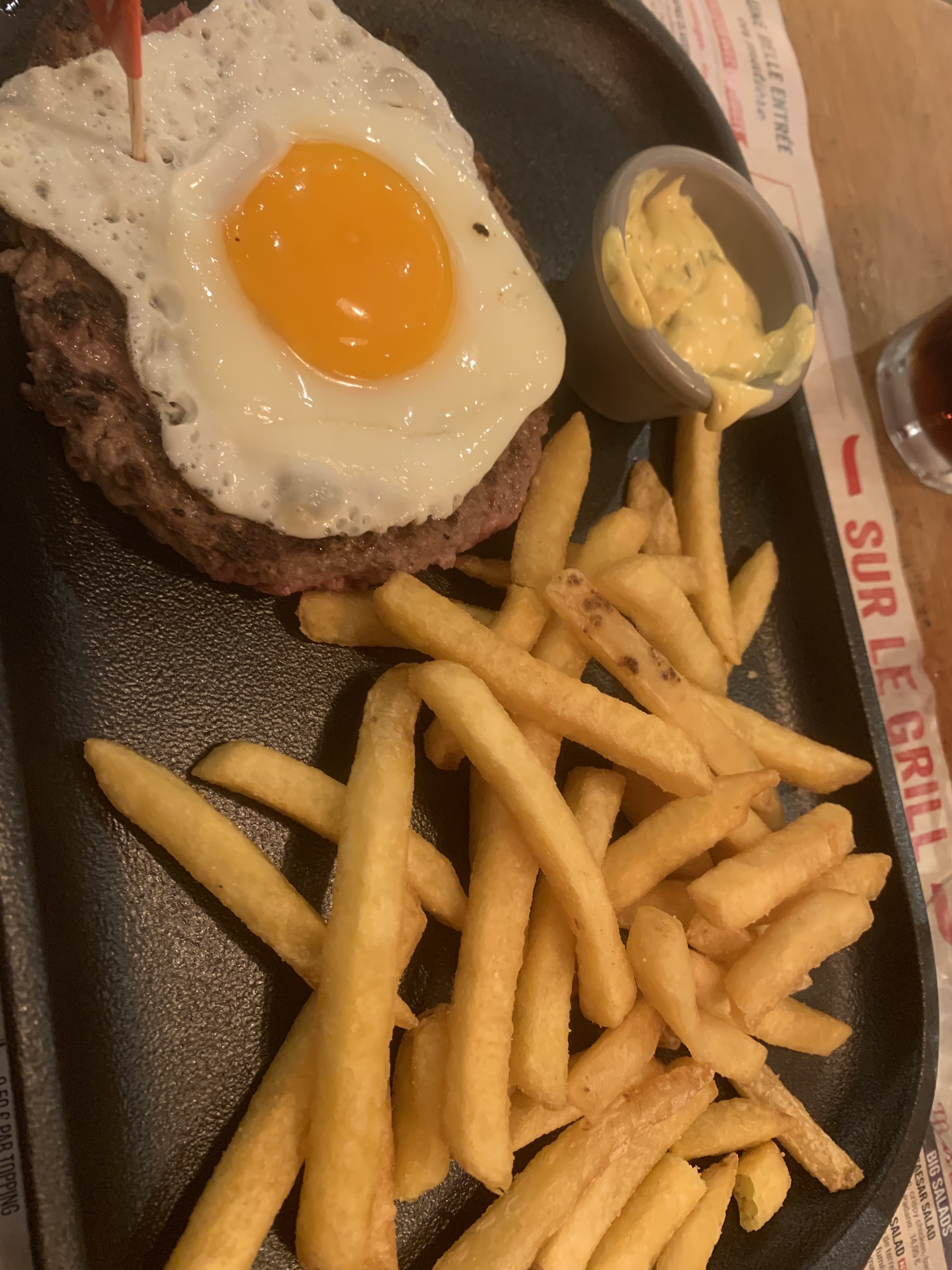 Bonjour, Du côté du service rien à dire notre serveur était très gentil et très serviable. Par contre niveau cuisine nous avons été plutôt déçu, les petits tapas en entré étaient correct mais le reste… Mr a pris une assiette du trappeur vraiment pas généreuse très peu de frite, Mme a pris les ribs de porc et ils étaient tiède et pas caramélisé, presque l’impression qu’ils sortaient d’un emballage sous vide… je ne critique pas le sous vide ou le surgeler mais un petit coup de grill aurait été appréciable.