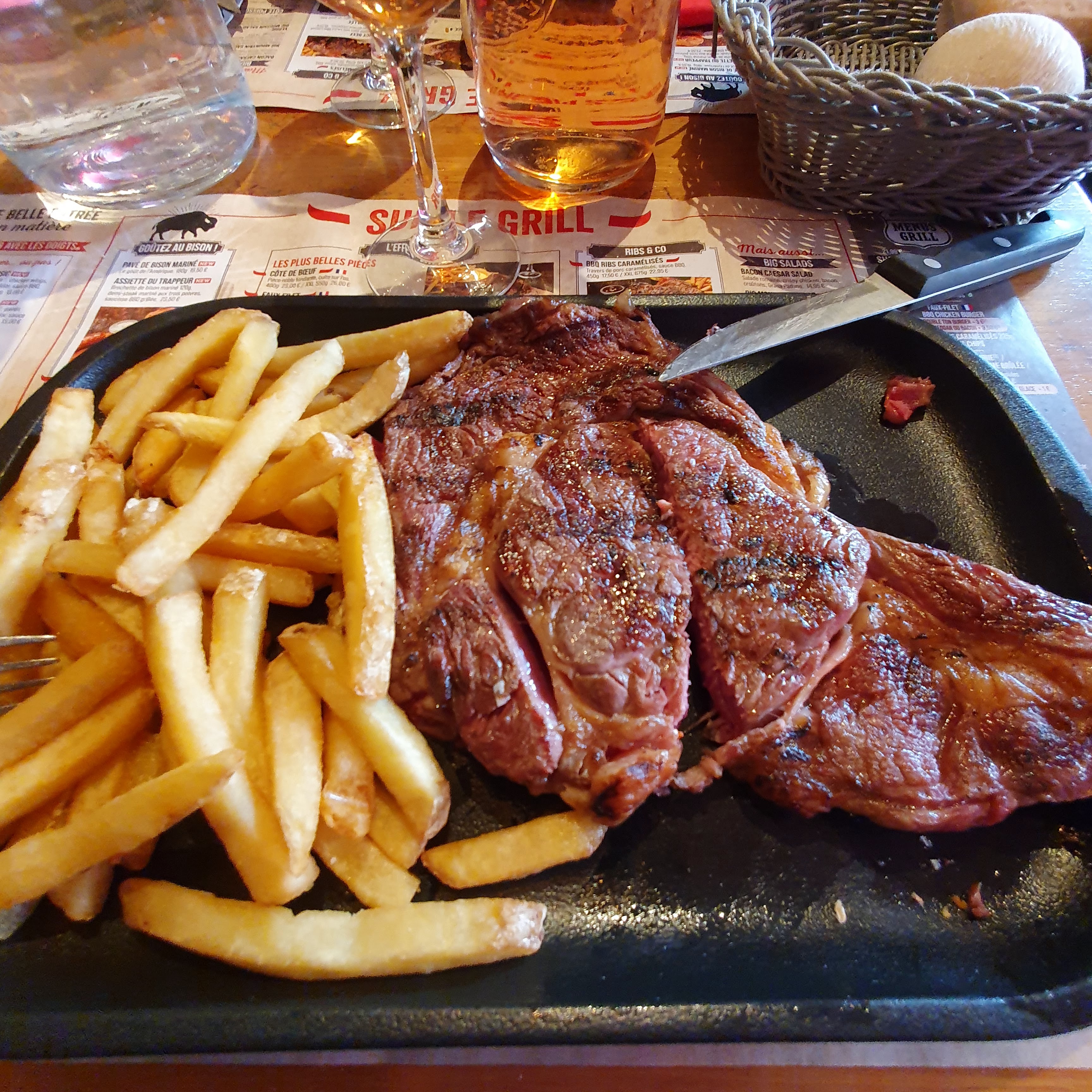 Entrecôte avec goût de plancha brûlé a 21€90 !!!!!, Vin rosé avec un dépôt en fond de verre que je me demande ce que ça peut être, sucre ??? Franchement déçu