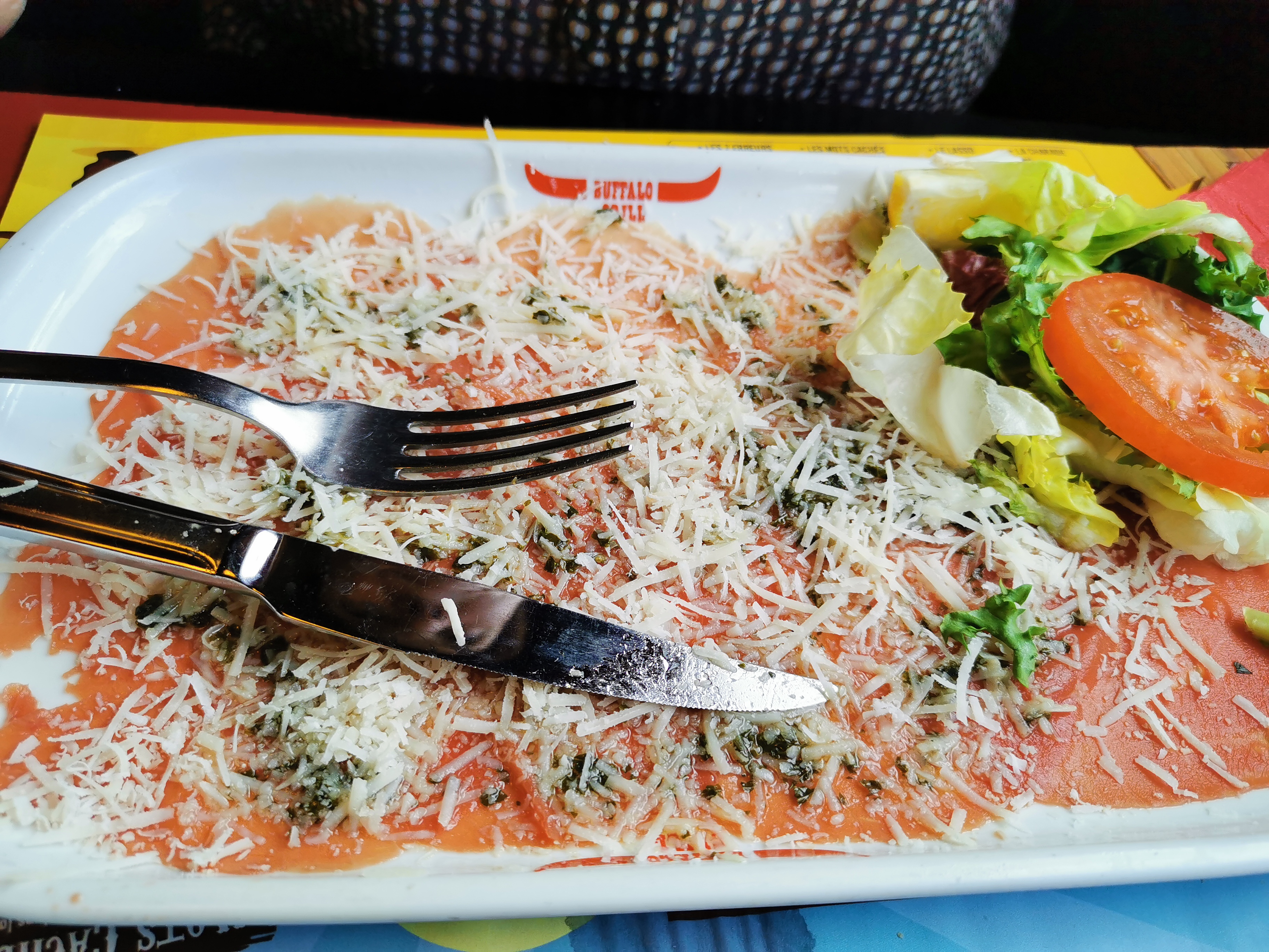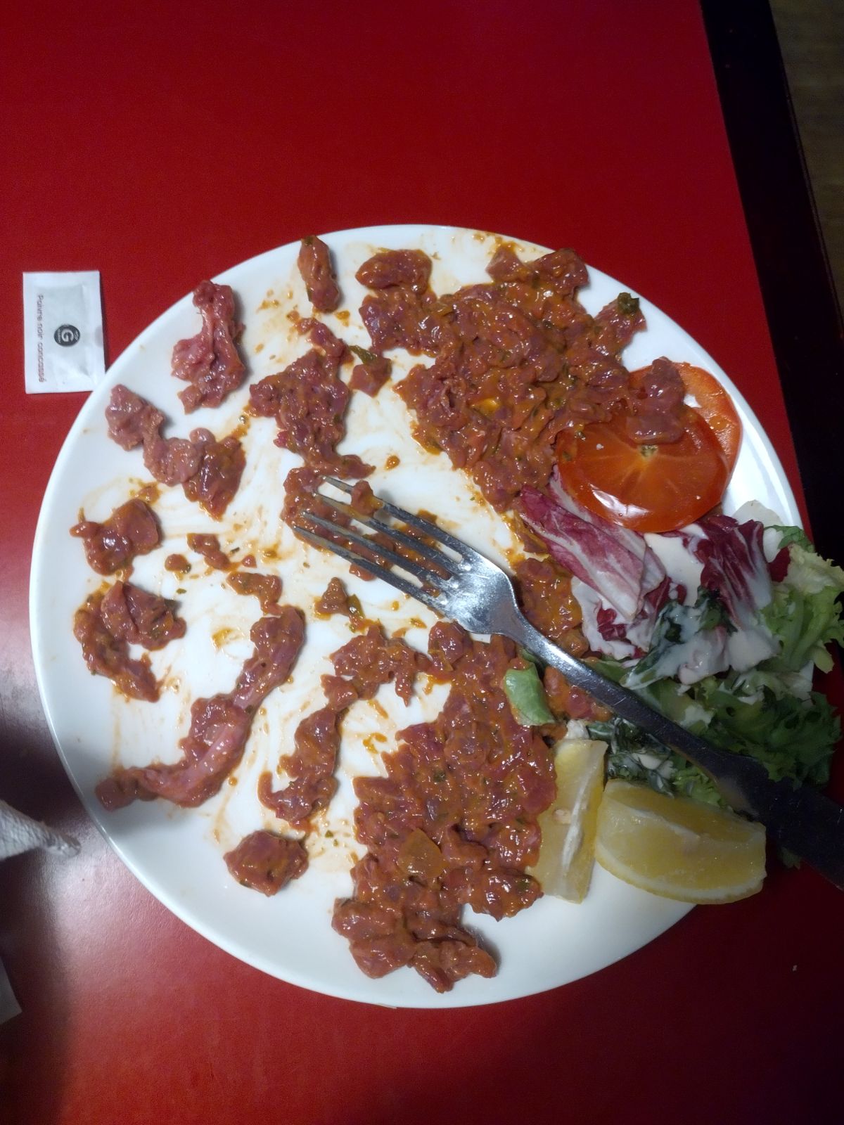 L'avantage de manger dans une chaîne de restauration va consister à prendre quasiment le même repas partout et de comparer... Le carpachio de bœuf est copieux, le tartare mélangé est frais et un peu relevé... Donc : restauration à conseiller Pour le service... le personnel changeant tout le temps... impossible de généraliser