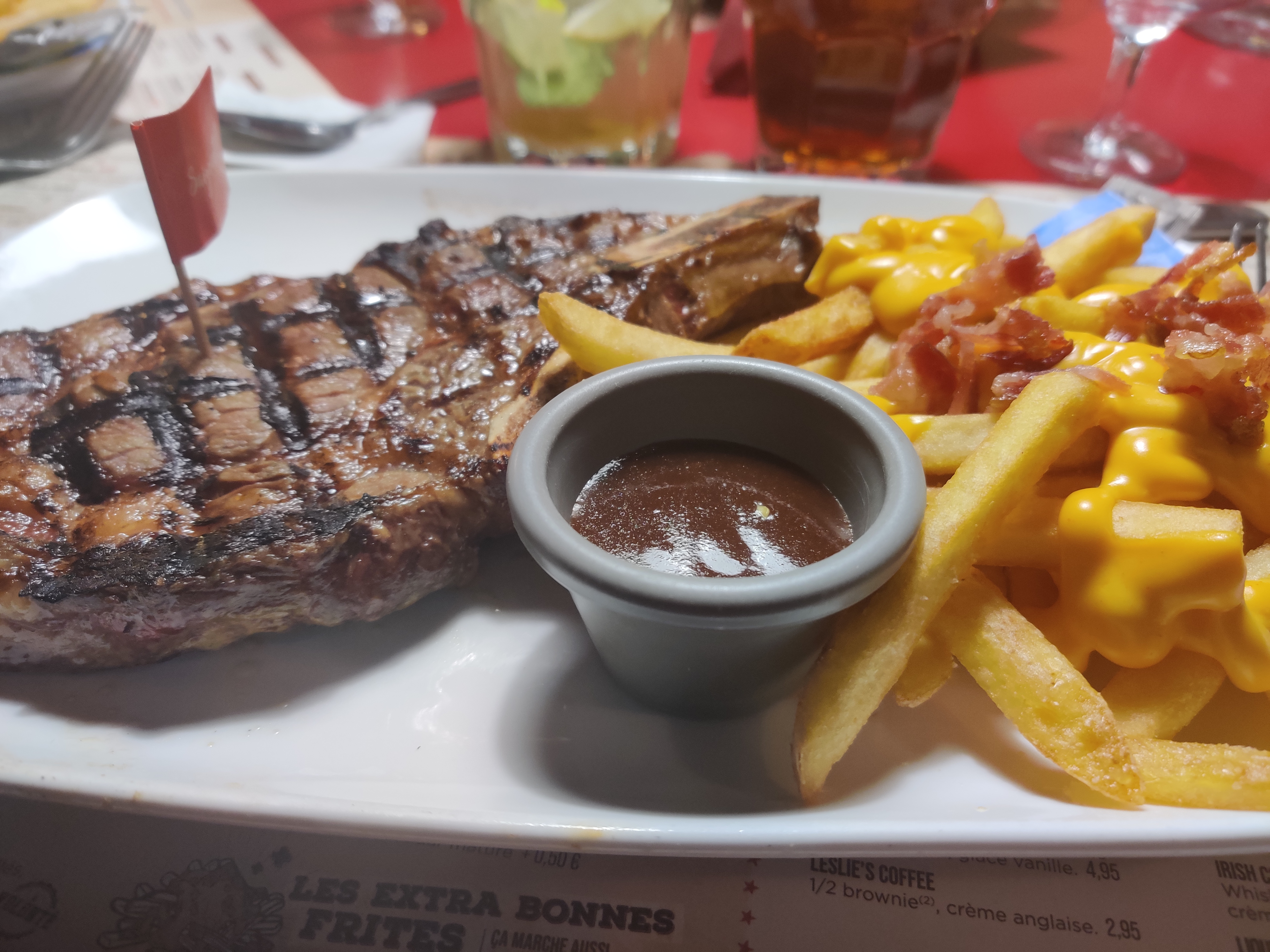 Nous avons été un peu déçu avec mon conjoint, le mojito framboise avait à peine 2 feuilles de menthe et 1 petit quart de rondelles de citron (pour rappelle le mojito je fais avec plusieurs feuille de menthe, du citron coupé et du sucre de canne qu'on pilé ensemble avec un peu de rhum) ensuite l'erreur de notre commande nous a tout de même choquée, en effet, nous avions commandée une côte de bœuf XXL 550gr mais on c'est retrouvé avec une entrecôte de 300 gr.... on le signal et la côte arrive très vite après, casiment froide.... L'équipe a été très accueillante et très commerciale ! Mais j'avoue que sur le plan préparation c'est pas fou... avoir si cela s'améliore dans l'avenir...