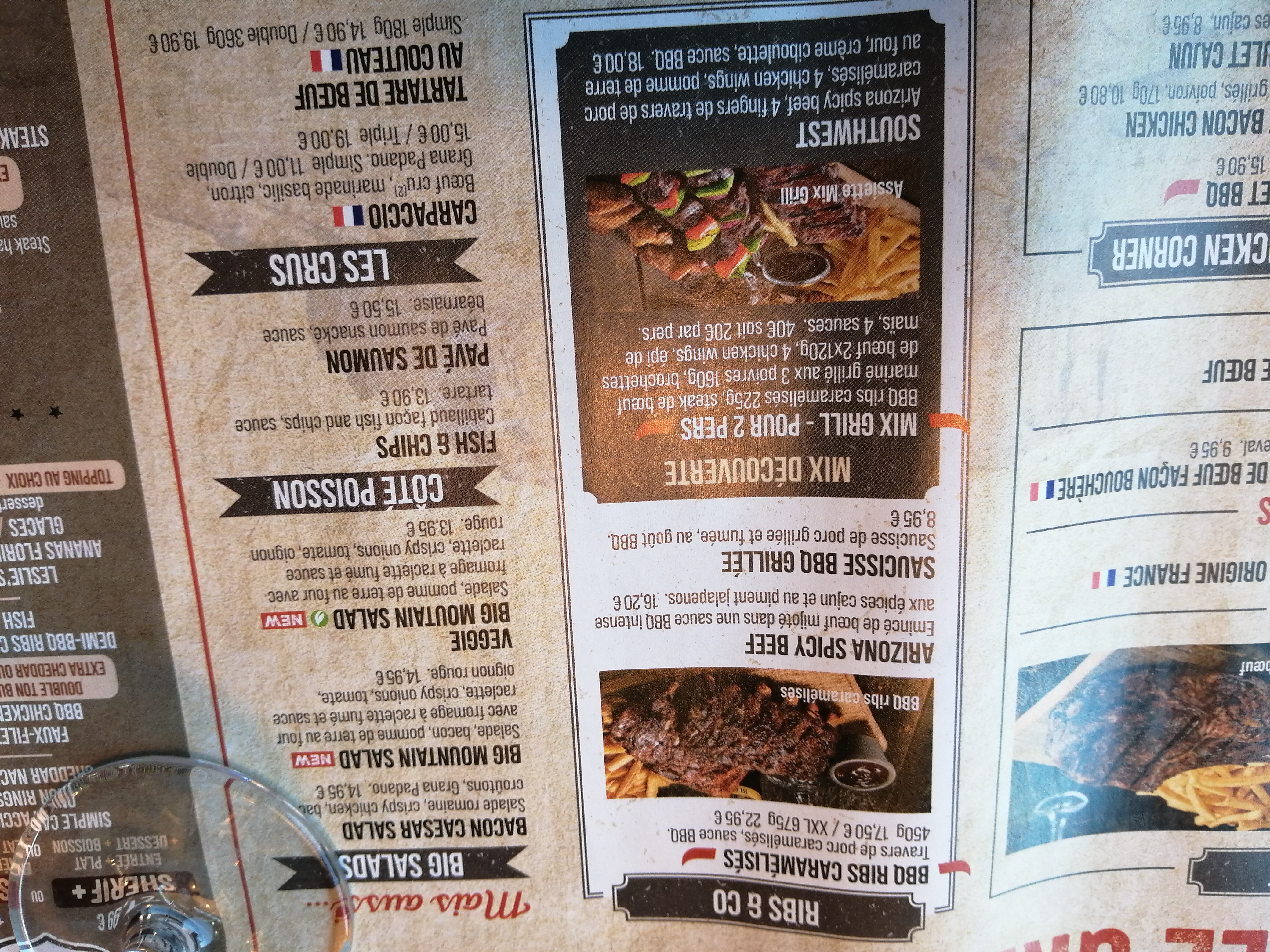 Les salades en entrée et les accompagnement étaient bof mais la viande était bien cuite et les dessert bon. J'ai vu un serveur prendre la peine d'emballer un plat pour une cliente qui devait partir sans avoir pu le manger à cause d'un contre-temps. L'ambiance était donc bonne et à la plaisanterie. La décoration est bien même si elle est un peu classique classique de cette chaîne de restoration. Un peu dommage que les jeux ne marchaient pas et que les toilettes soient tous à l'étage néanmoins.