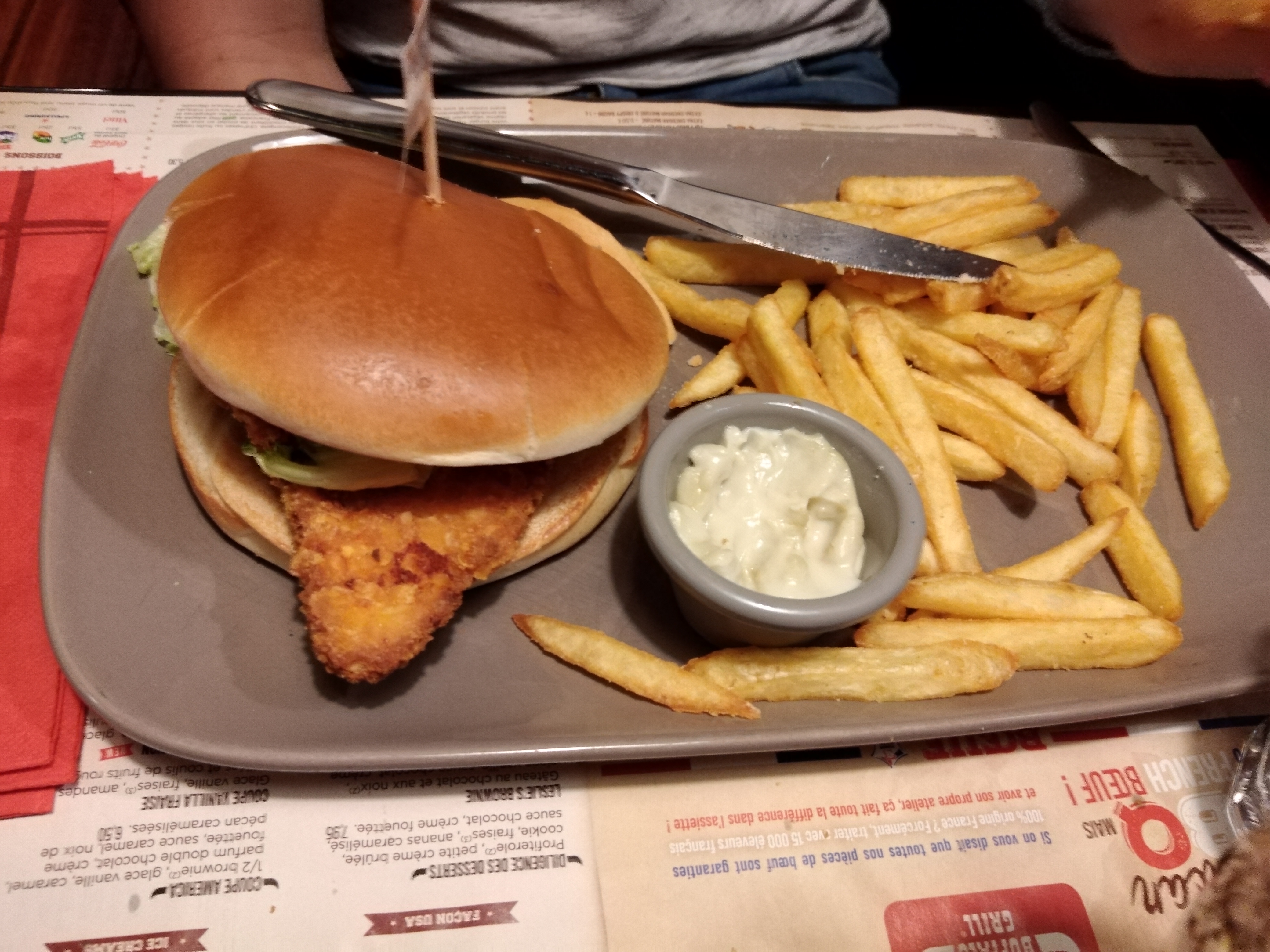 Pavé de bœuf sauce au poivre moyen car la viande était dure...bon burger ou mon fils s est régalé...