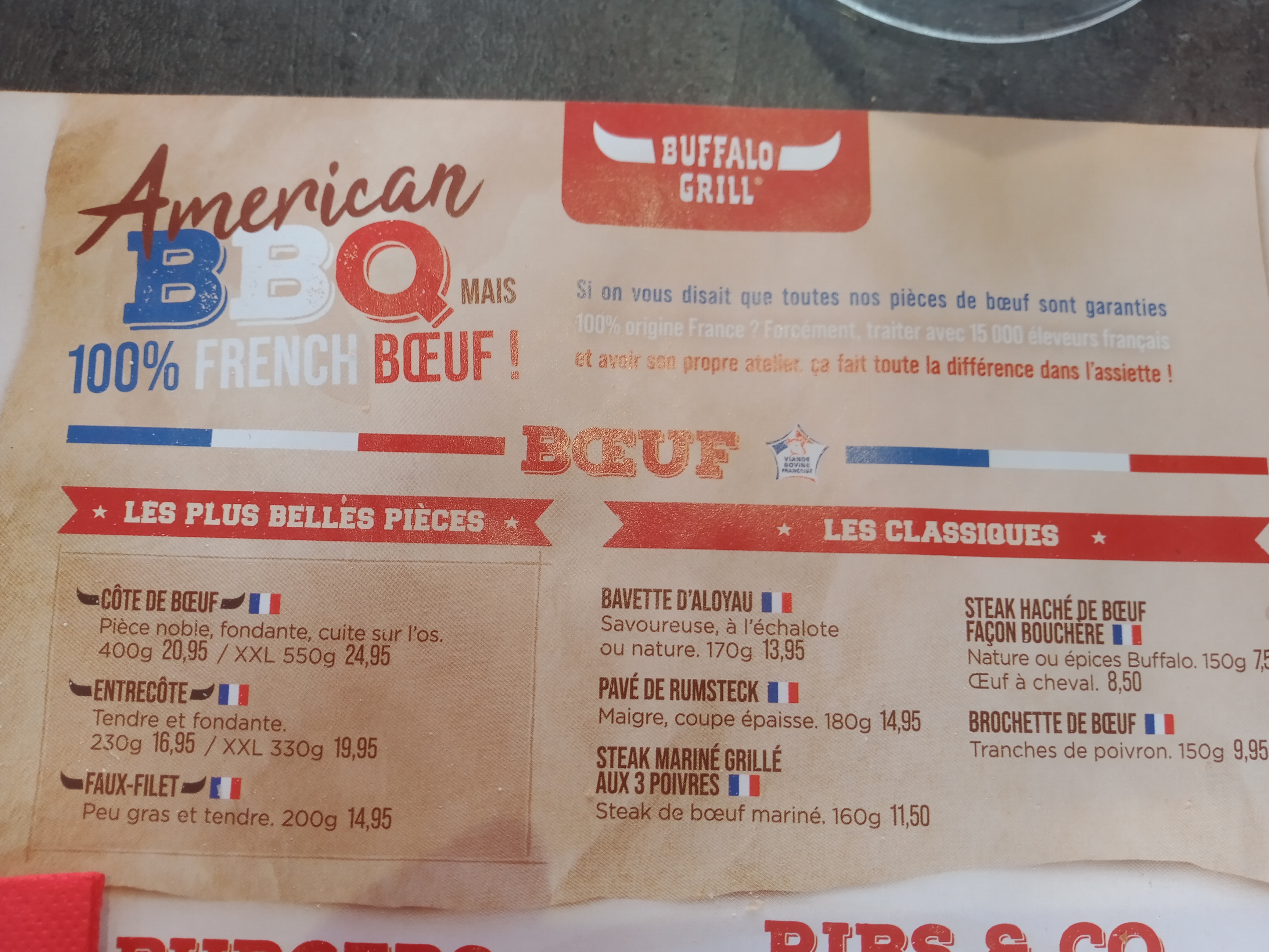 ça reste la même cuisine que dans n'importe quel Buffalo Grill mais l accueil et surtout la jeune femme qui c'est occupé de nous pour le service a fait que nous avons passé un tres bon moment