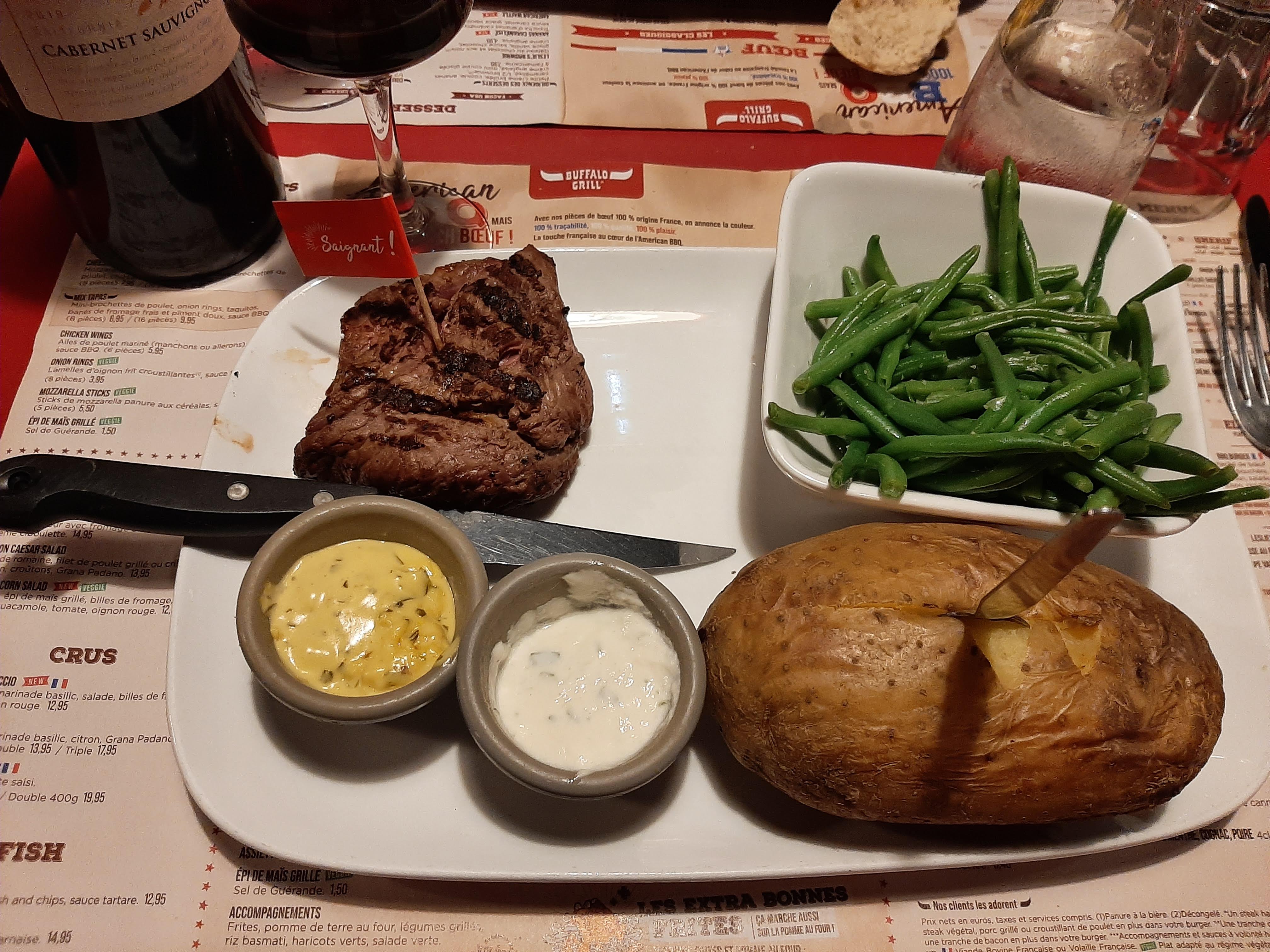 Désolant !!!!! Assiette vide par rapport au prix des plats Quantité insuffisante Morceau de viande trop petit cuisson non respecté Tout est emmener en même temps alors que l'on commande un apéritif donc pas le temps de consommer tranquillement puisque les plats sont quasi froid en arrivant Serveur peu souriant ni serviable Expérience désolante pour un buffalo alors qu'on en a fréquenter en d'autres lieux où l'expérience avait été plus concluante A éviter vraiment Trois personnes quasiment 100 euros au final Très décevant