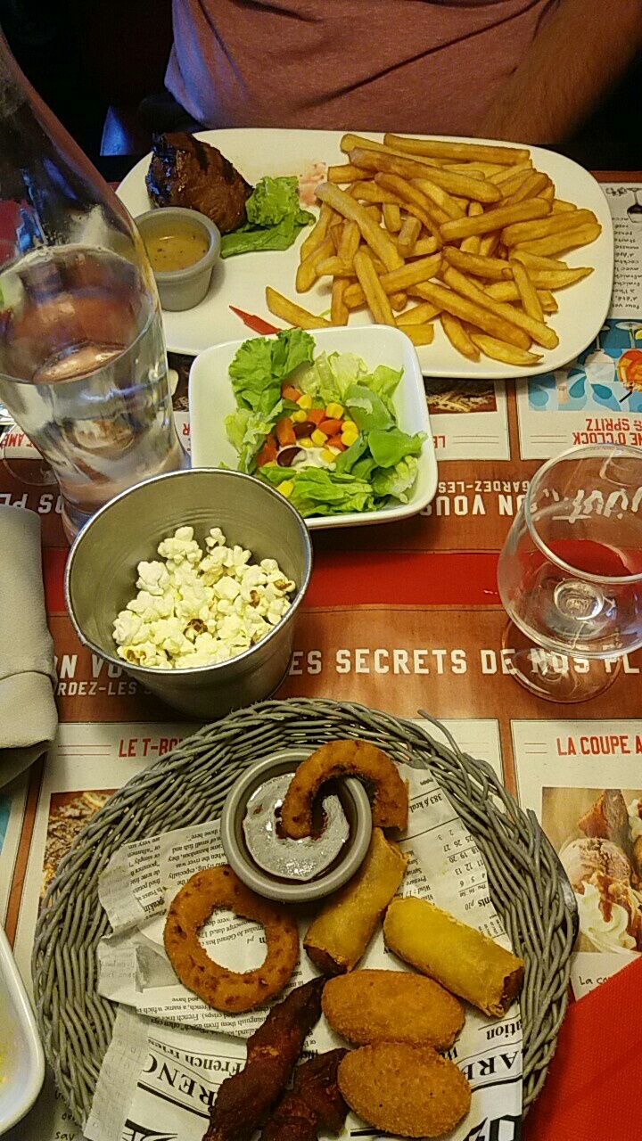 Venu en amoureux sans nos enfants, nous nous somme étonner du peu d'affluence. Nous avons étais placer au plus près du bar et à coter d'une petite famille fort sympathique. Petite assiette de tapas ou se batter en duel 4 oignons rings, 2 boulettes de cheddar et 2 pilons de poulet pour la maudique somme de 8 euros tout de même. Un tartare de bœuf sans saveur et un carpaccio pas ouf servit avec un bolinet de frites. Verre de kir donner à la fin du repas , sûrement oublier sur le bar. Il y a des restaurations rapide qui font mieux.