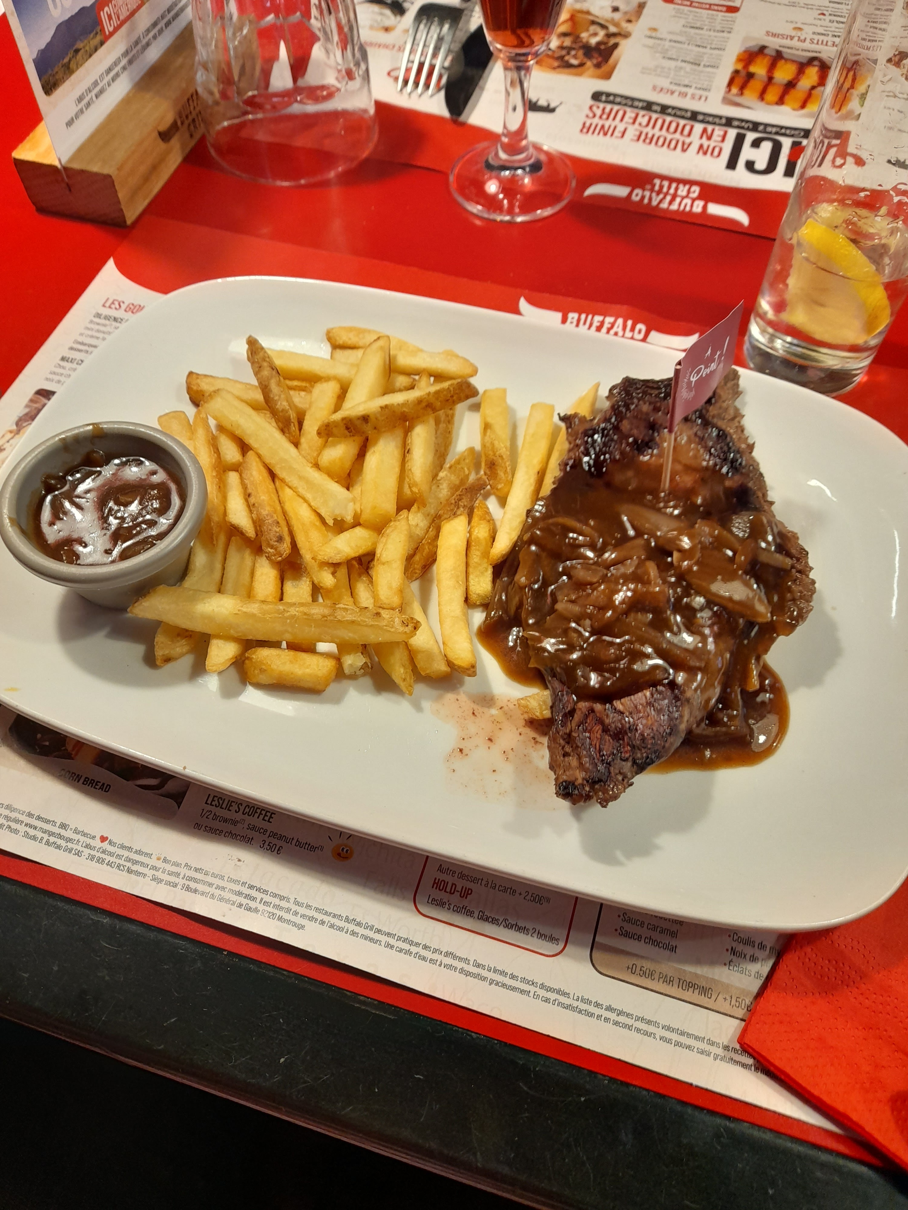 Première expérience au Buffalo Grill un peu décevante, c’était pas mauvais mais pas incroyable non plus, le personnel est cordial