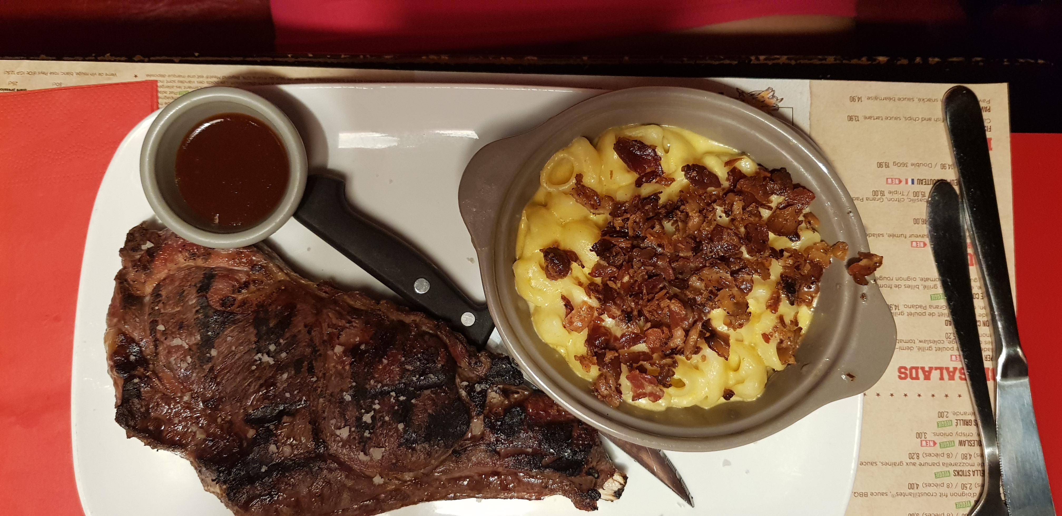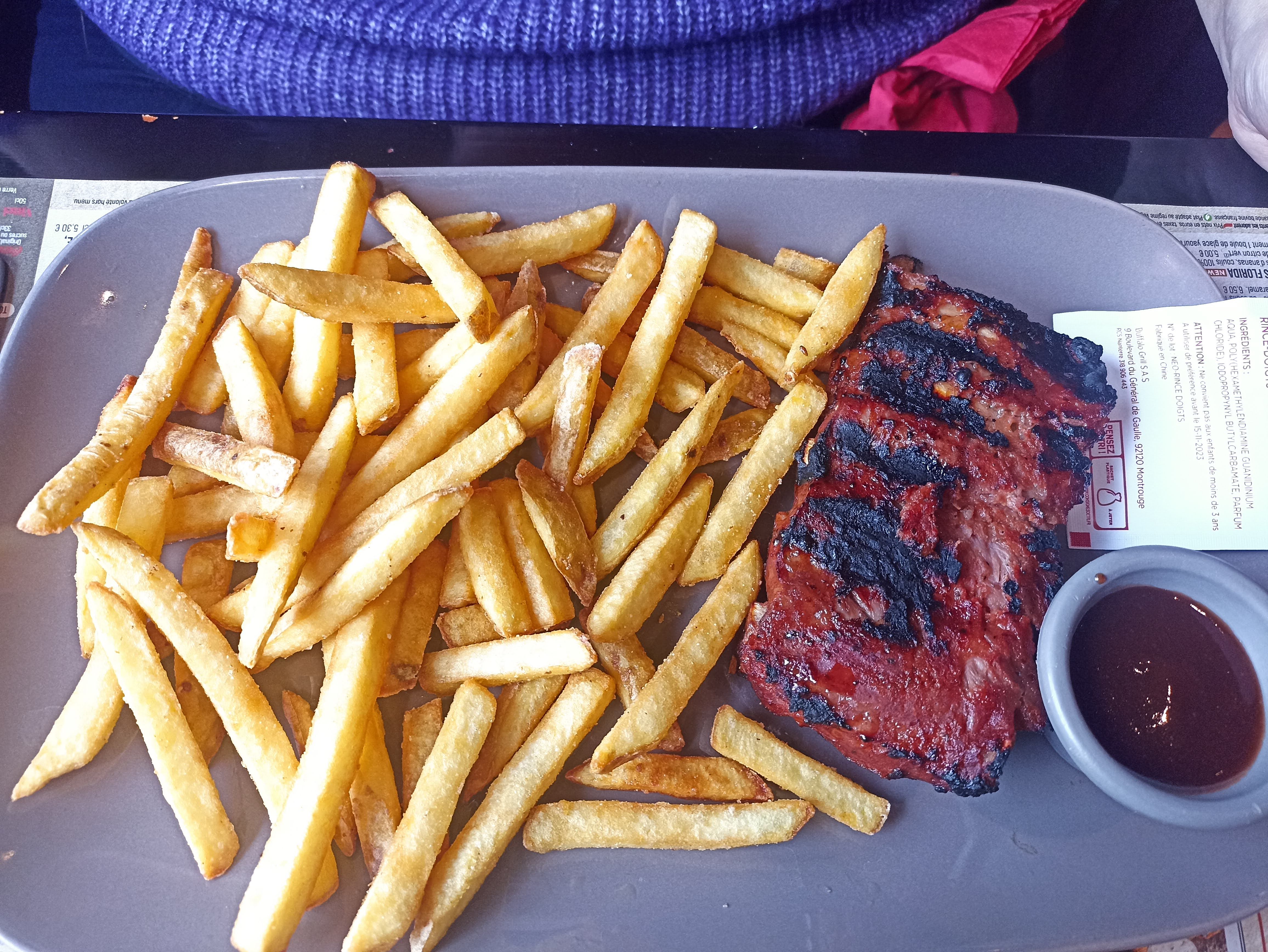 Avec ma famille nous avons passé un très bon moment dans ce restaurant : le personnel est agréable, la nourriture est bonne et l’ambiance du restaurant nous plonge dans l’univers américain par sa décoration. Les petites attentions telles que la salade gratuite et le petit mot écrit à la main sur le ticket de caisse sont appréciables et il est plaisant de pouvoir choisir son accompagnement et sa sauce pour le plat. Attention toutefois, je déconseille de manger dehors car le restaurant est situé au bord de la N104 ce qui peut être très bruyant.