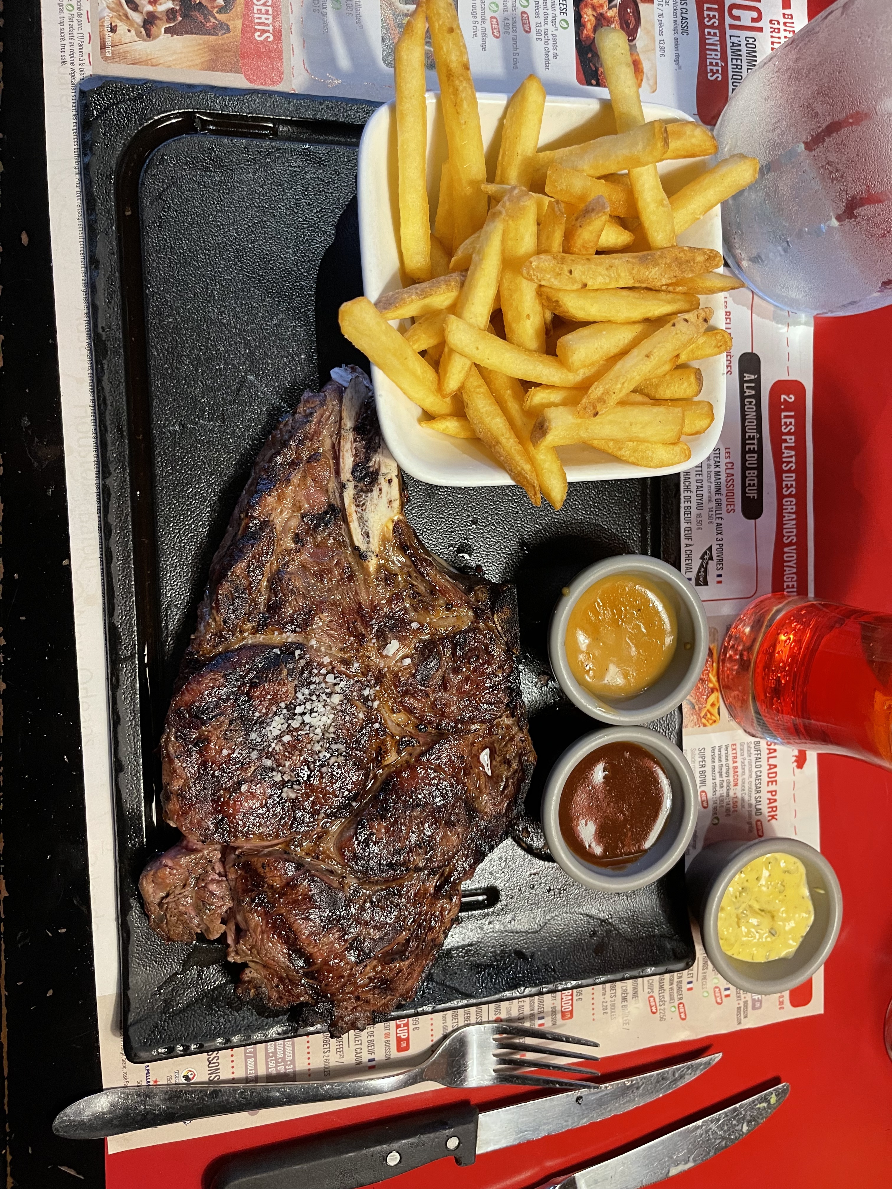 Faux filet tres bien , savoreux avec des bonnes frites mais service un peu longue( pour le dessert) je pense la cause c'est le manque du personnel ,et je trouve le restaurant un peu bruyant avec la musique d'anniversaire 🎶...