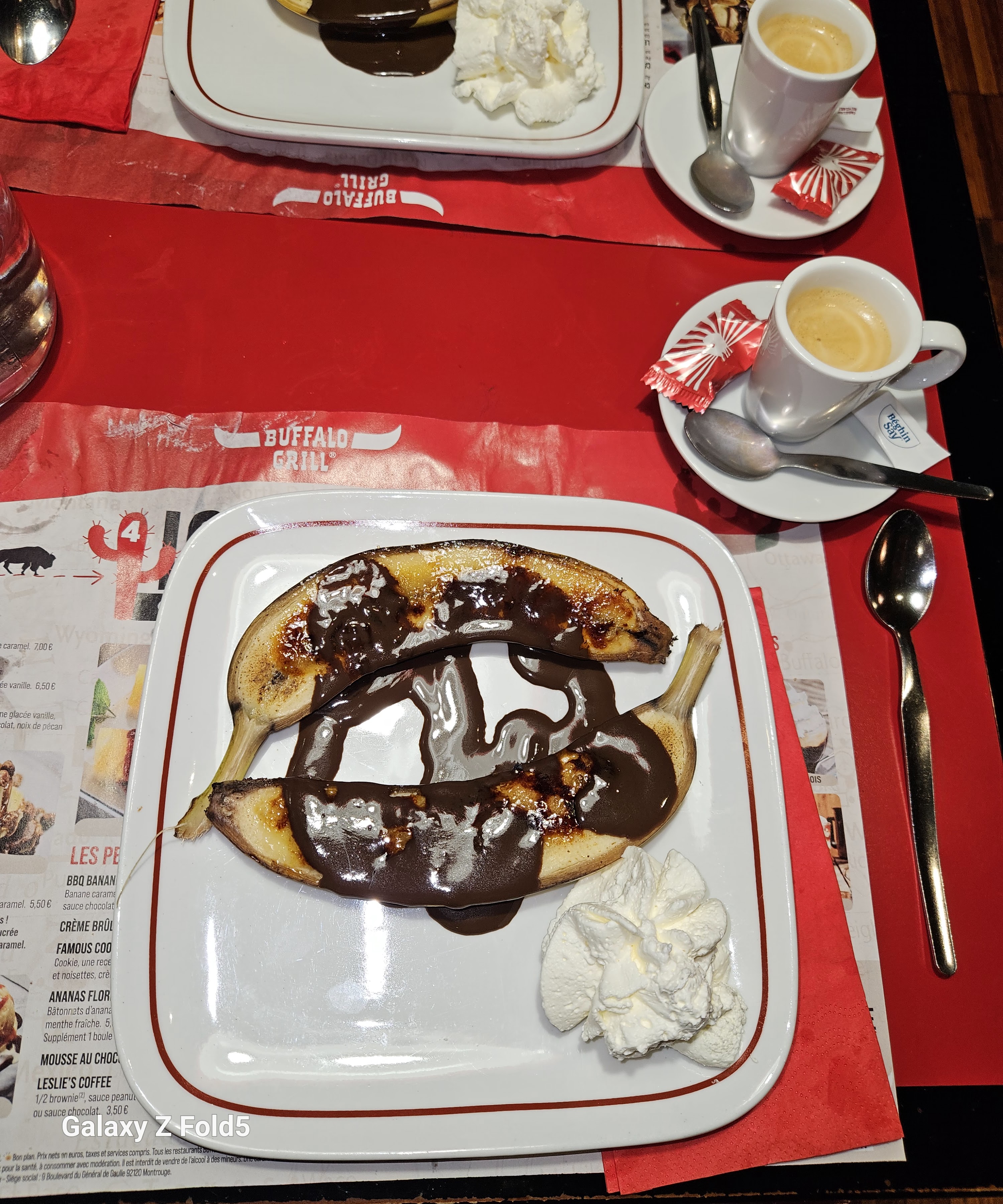 Allez y! Un buffalo bien placé, malgré l' heure tardive, on a été bien accueillis. On a été pris en charge de suite. De l' apéritif au désert, le repas était très bon. La serveuse était fort sympathique. L' ensemble du restaurant est très propre et on a pu prendre notre temps pour manger en famille. Seul petit bémol à mon goût, la possibilité de passer sa commande via un QR code, ce qui retire pour moi un peu de l ADN d'un restaurant, mais ceci étant optionnel, on a préféré être commander directement à la serveuse.