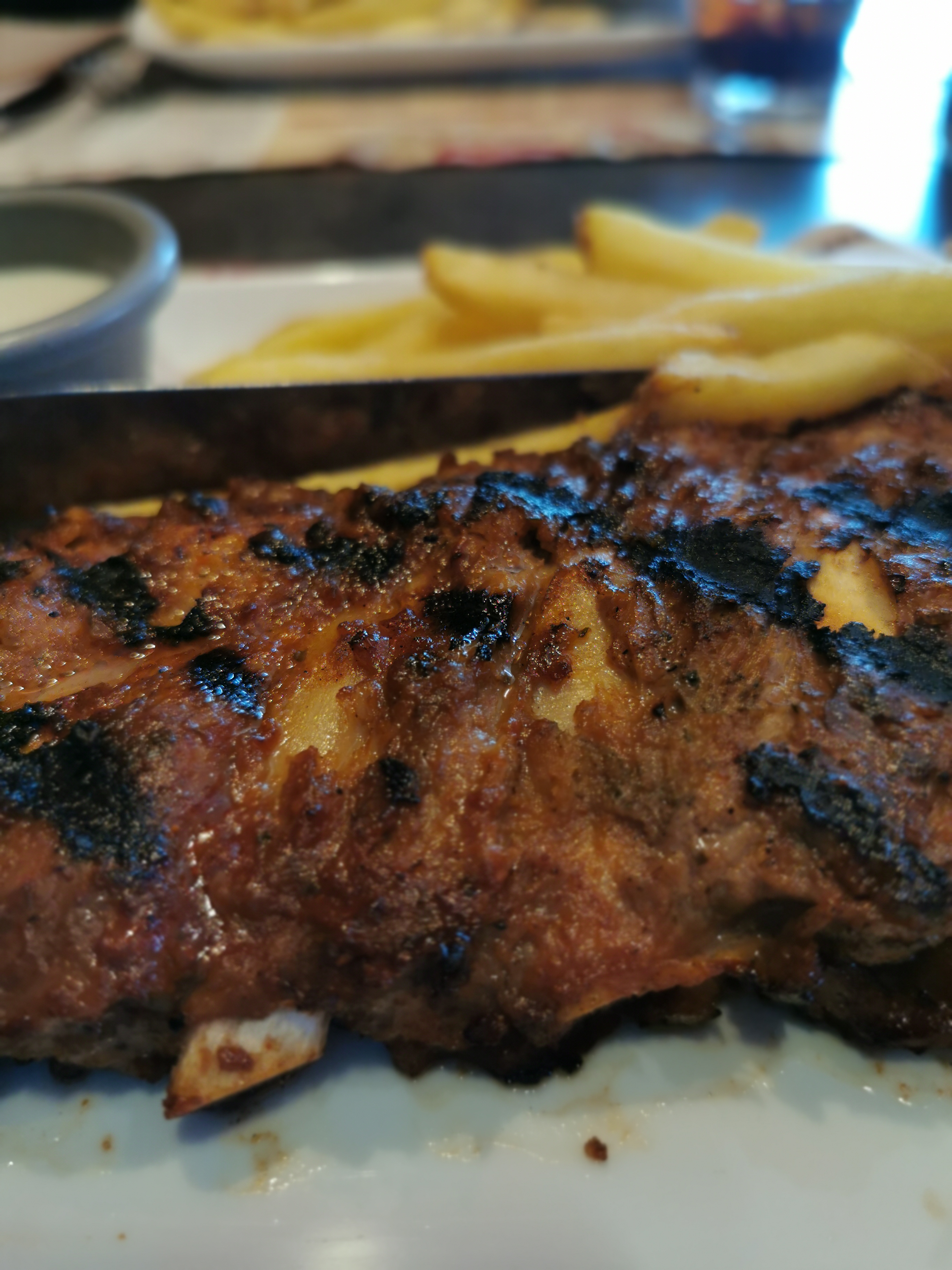 Très mauvaise expérience. Mon compagnon a prit une cote de bœuf et l’avait demandé très saignant. Résultats la viande était partiellement cramé, trop cuite et très nerveuse. Moi j’ai pris les ribs caramélisées… le plat était froid, sans goût, la viande se décollaient comme rien de l’os et certains os se cassaient en les touchants. Les seuls points positif le serveur assez sympa. Je suis très déçu d’avoir payé 60€ pour des plats aussi décevants. Je laisse jamais de commentaire mais là c’était trop…