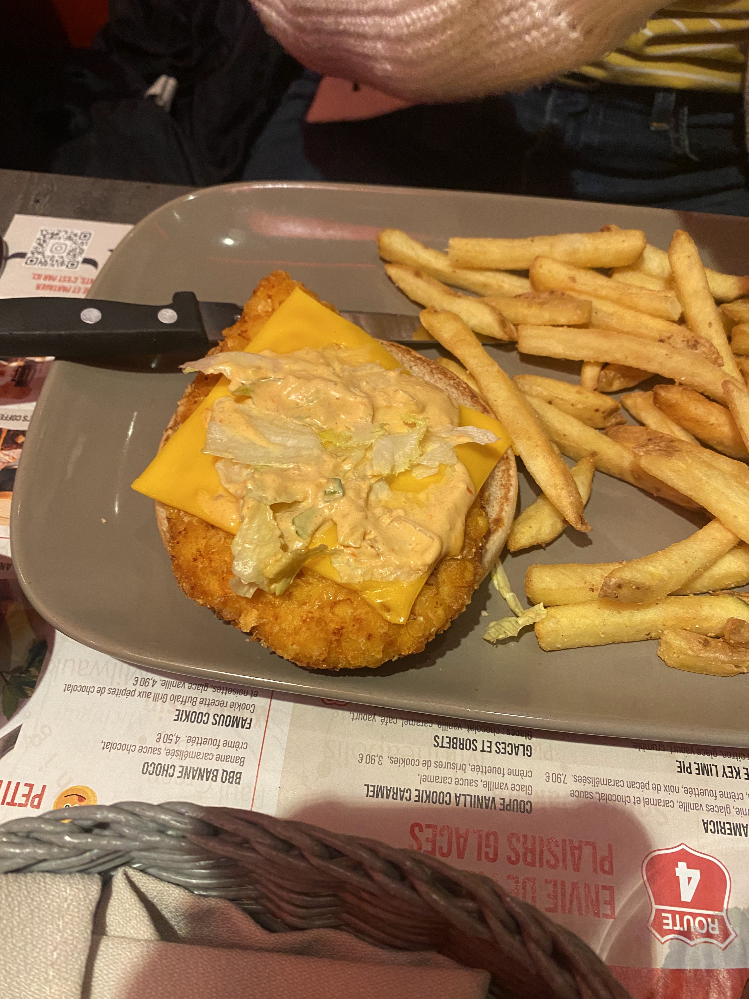 Qualité des plats excellente. Des vraies frites maison comme on en mange rarement. Possibilité de commande avec le QR code très efficace. Serveuse très agréable. Endroit à recommander absolument si on veut manger de la bonne nourriture.