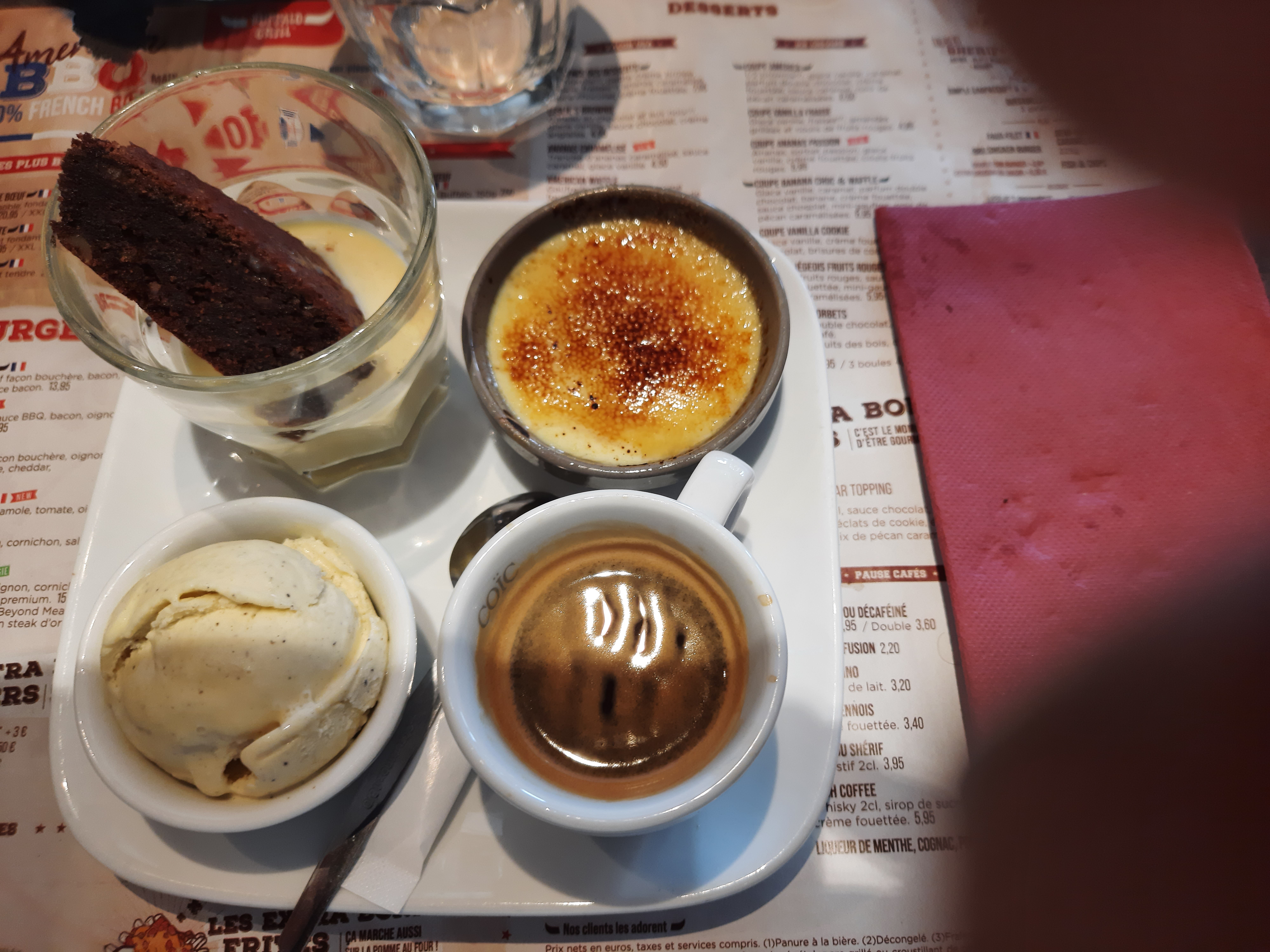 Très bien. Super serveur qui a vraiment pris le temps de nous parler, qui nous a envoyé les plats dans un temps parfait. Juste côté cuisine ma viande un tout petit peu cuite, mais celle de mon conjoint niquel et la crème brûlée de ne se cassait pas. En quantité rien a redire. Frites très bonnes. La tablette dans l'espace jeu fonctionne. Très bonne soirée