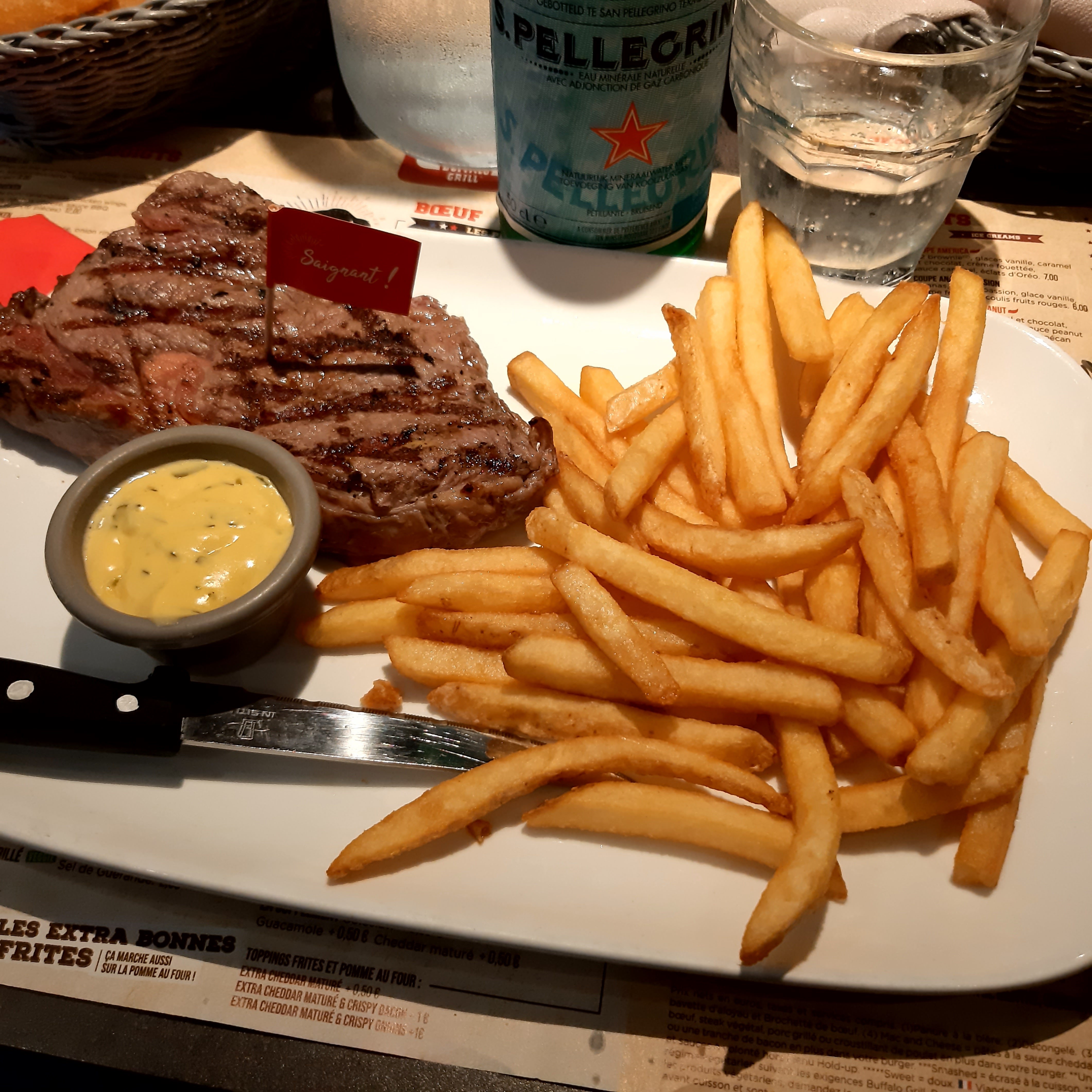 Alors niveau service et rapidité, impeccable rien à redire. Notre serveuse était très gentille et souriante. Par contre, on sort de table et on a toujours faim ! Portions ridicules, pas grand chose a manger dans l'assiette, sauces en plus payantes, garnitures en plus payantes.... Payer un menu 17,50 pour avoir UNE patate c'est du vol clairement ! Je pense que c'est la dernière fois que nous venons chez Buffalo Grill.