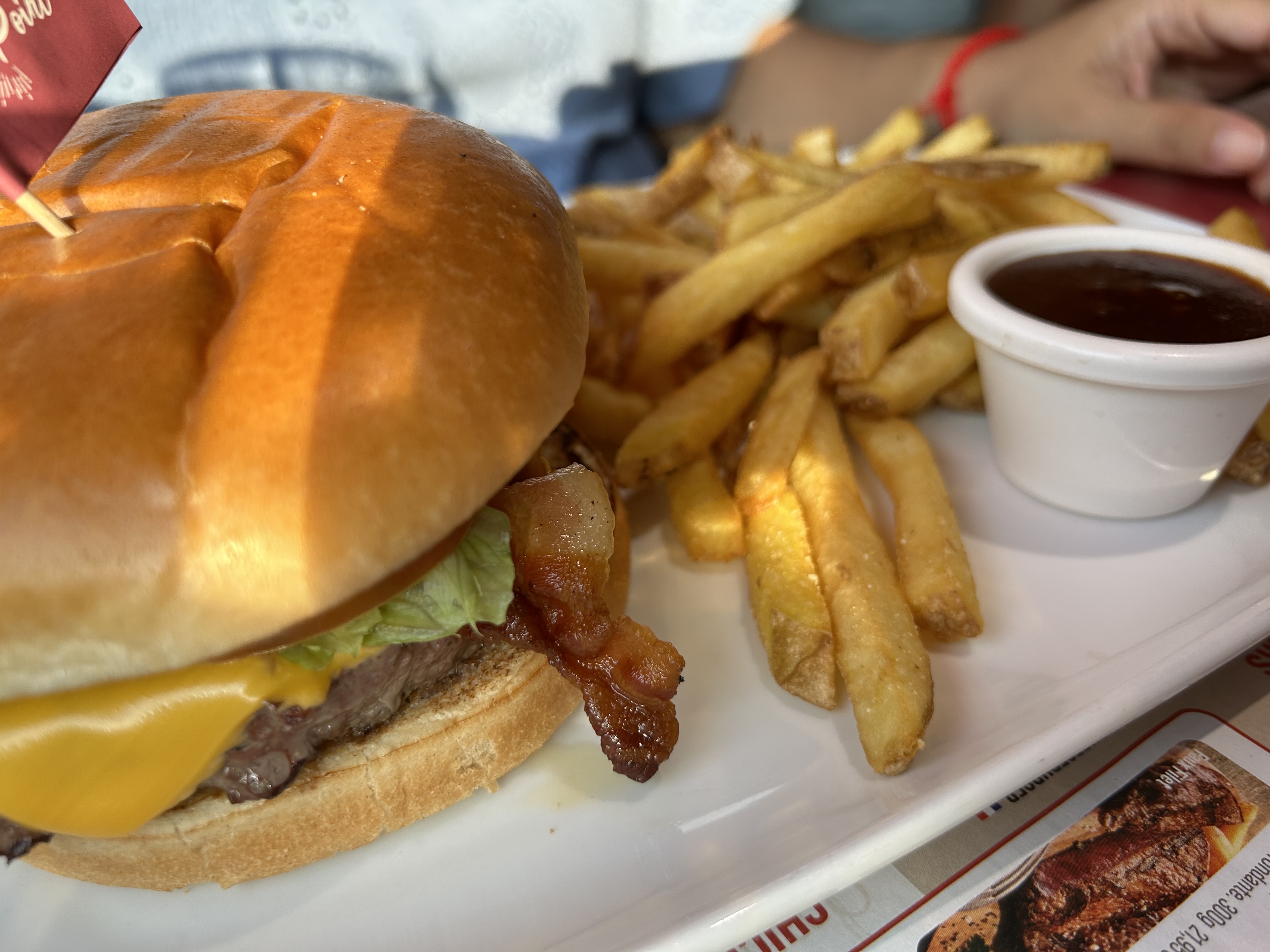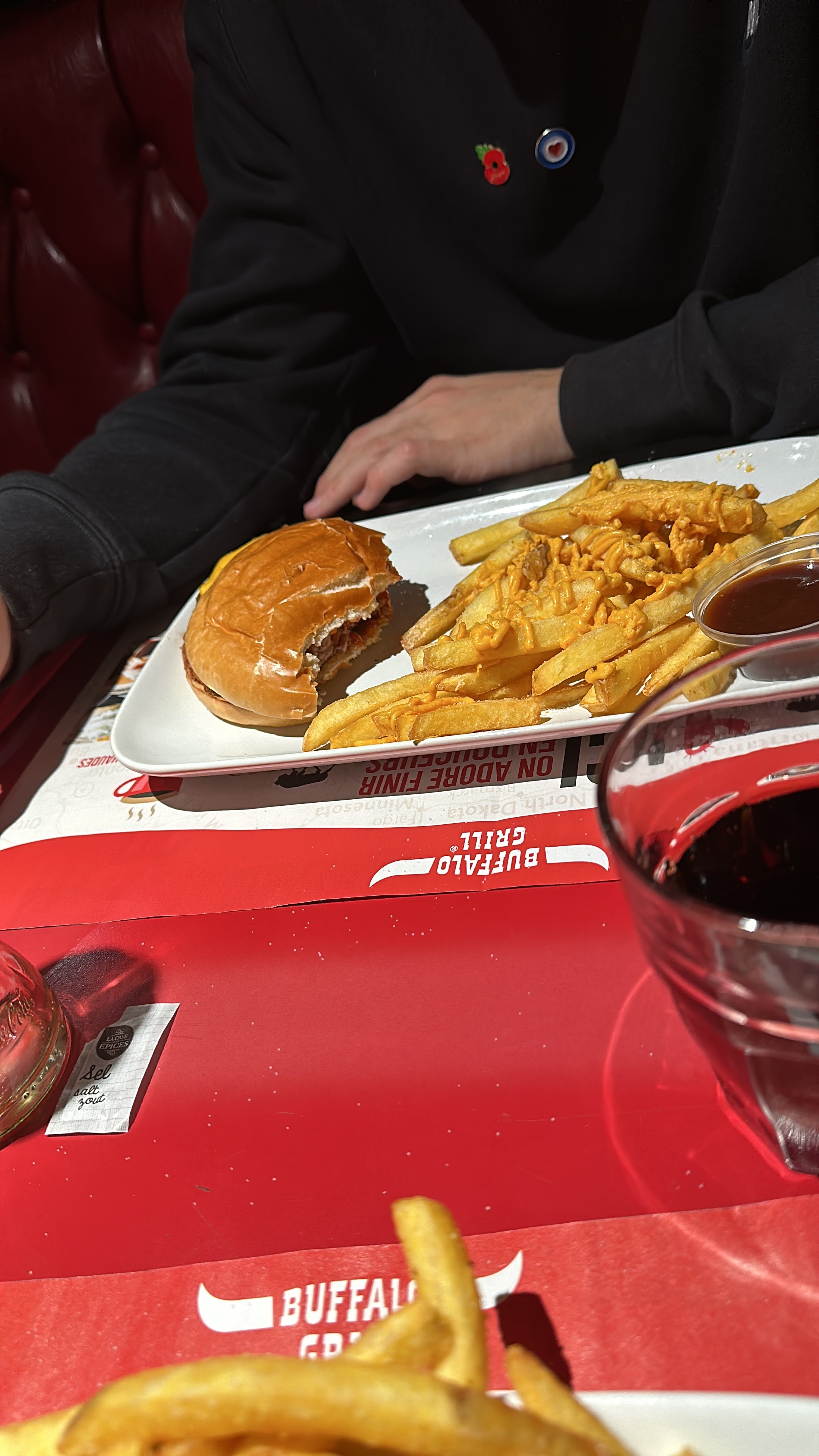 Pas ouf, pas de pochette enfant pour mon fils de 4 ans. Nachos avec du fromage en bombe. Burger froid et peu savoureux.le dessert était pas mal. Je pensais que tout les Buffalo était pareil mais à priori non… je jeûne serveur était plutôt sympathique.
