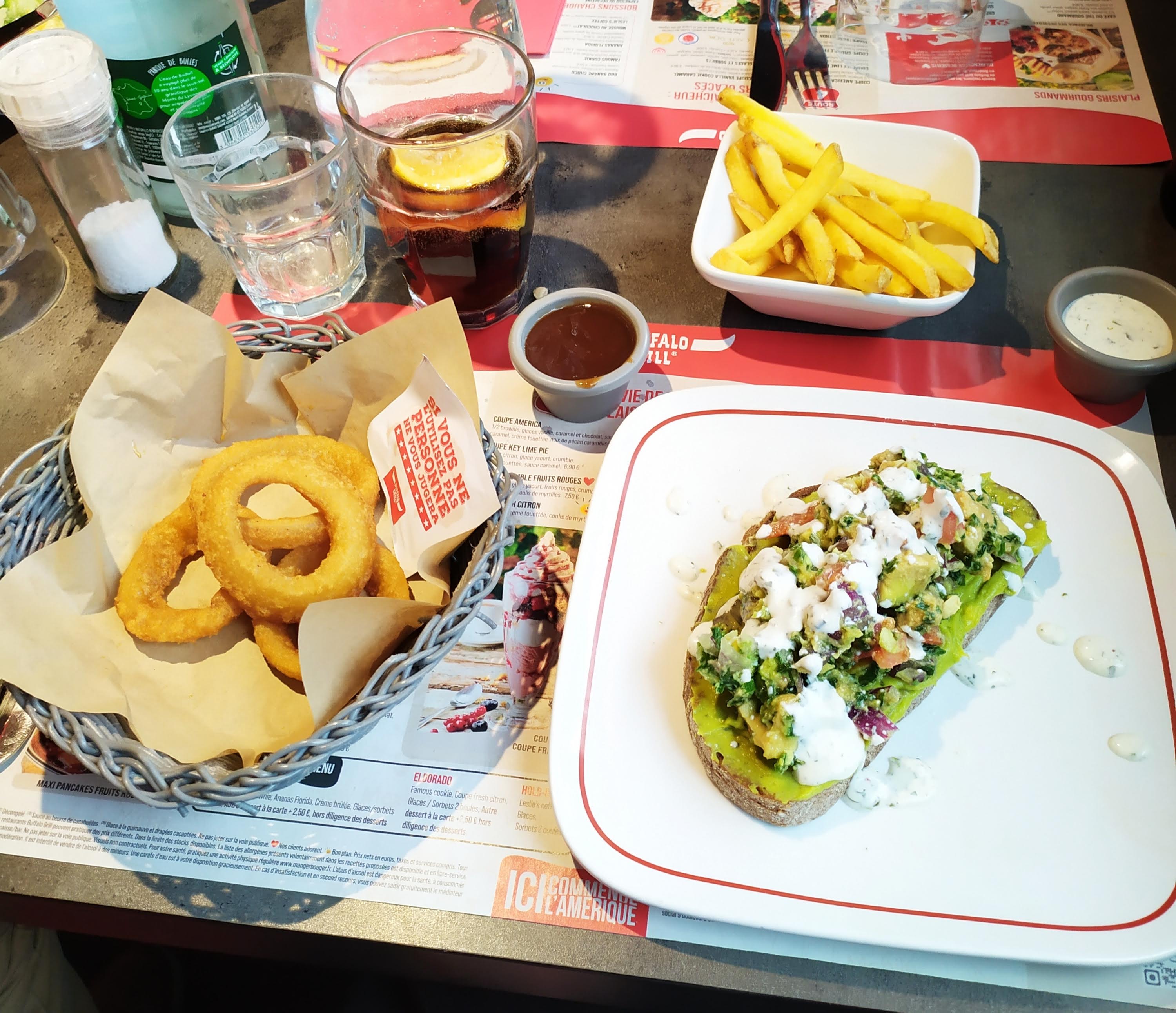 Une pause agréable pour se retrouver et manger un plat dans une ambiance bien typique de la franchise. Le service est sympathique mais un peu long. On a aimé les plats proposés et les desserts. La cuisson des viandes était un peu trop cuite, en portions plus petites que dans d'autres restaurant Buffalo Grill. Le Chili con carne parfait mais le menu gagnerait à indiquer la présence de poivrons car mon amie ne les digère pas...