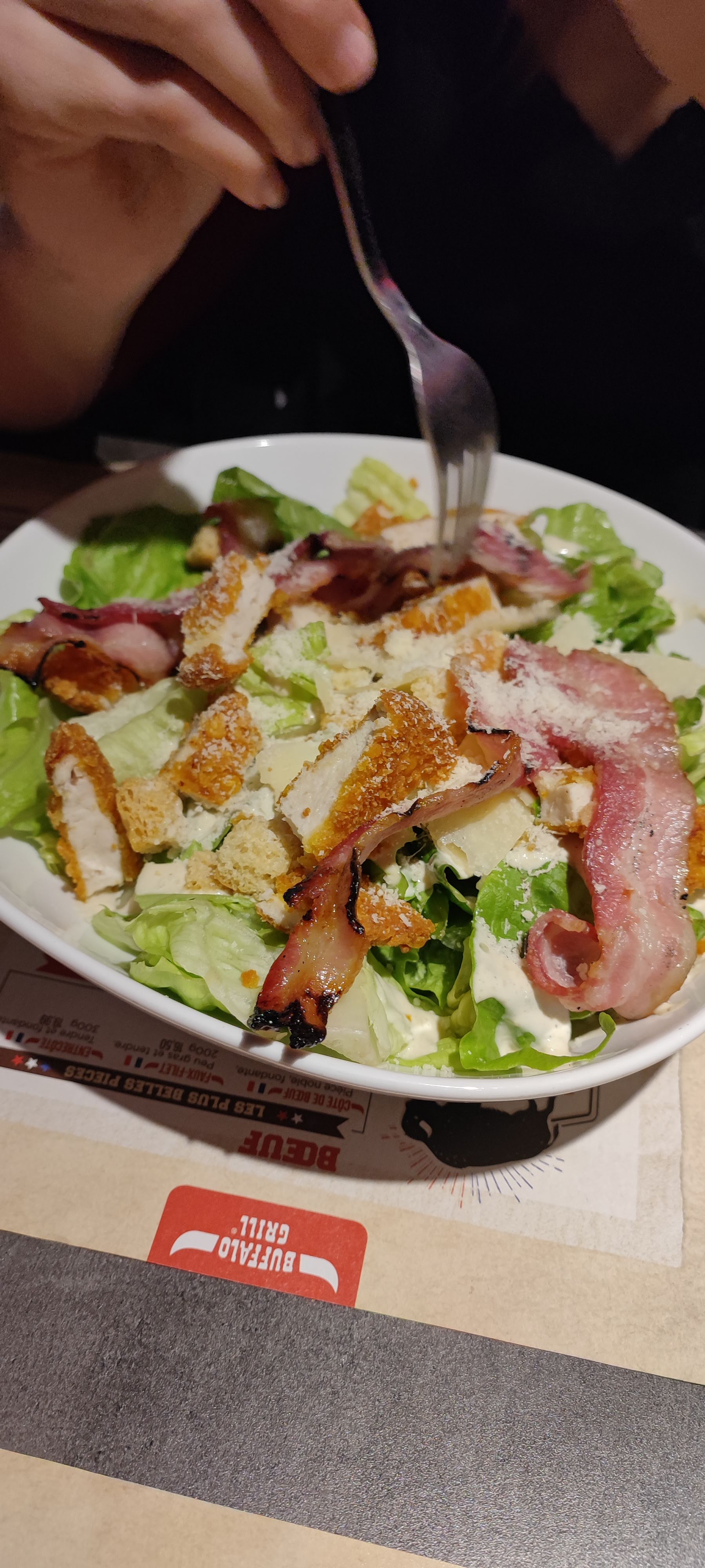 Grand habitué de Buffalo. On nous a pas proposé de salade d entrée ni de pain , vaisselle dégueulasse. Frites et nuggets livré dans une corbeille de pain avec de la sauce dans les maillons. Fourchette et cuillères avec des dépôts d aliments. Dommage car c était très bon. Je doute maintenant sur la cuisine.